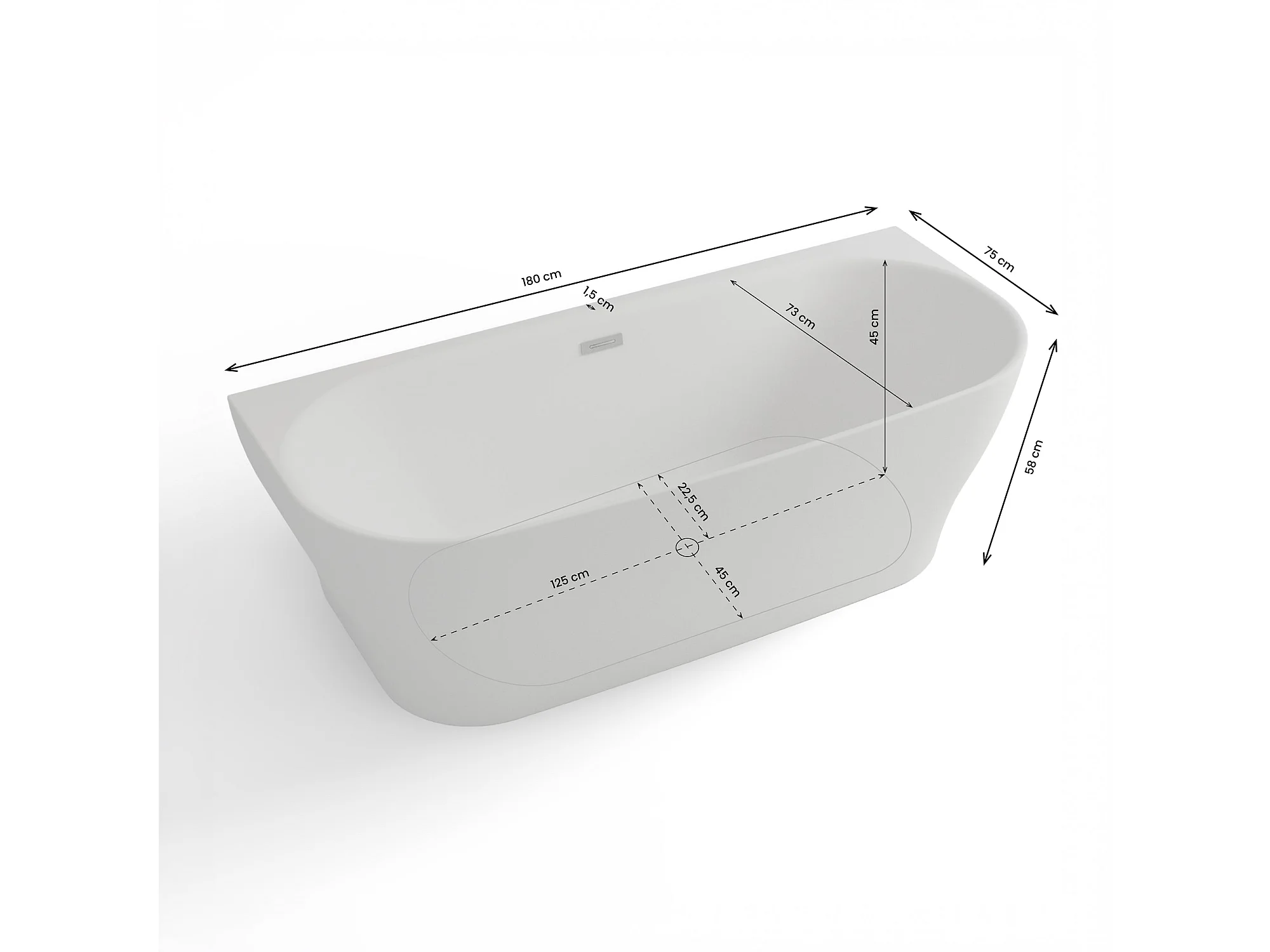 Baignoire Ilot Velvet 180 blanche 170 x75 x58 cm, by SPALINA