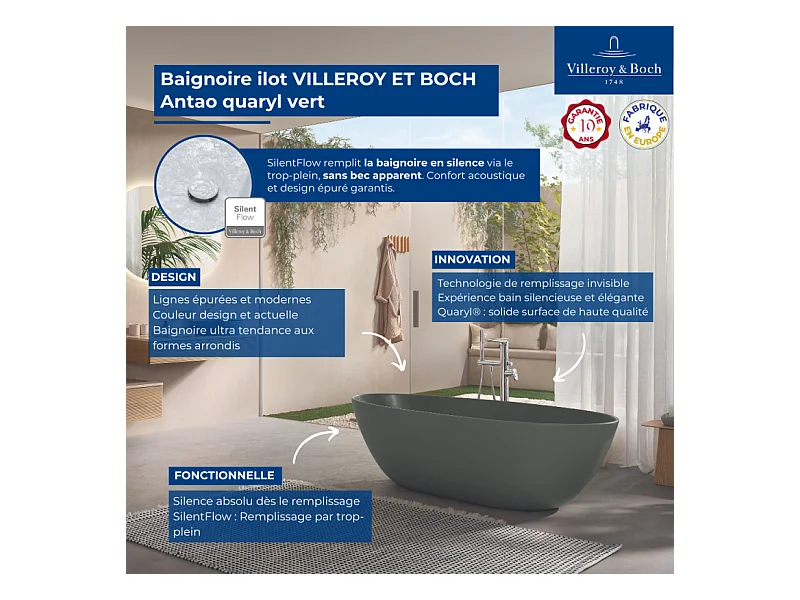 Baignoire ilot VILLEROY ET BOCH Antao quaryl vert