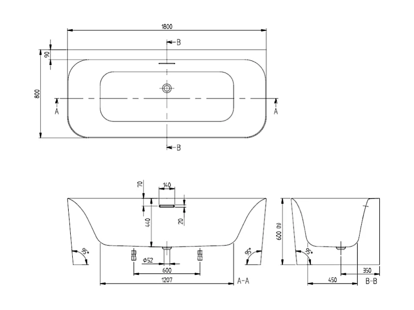 Baignoire murale semi-îlot VILLEROY & BOCH Loop & Friends avec bonde blanche et trop-plein chromé