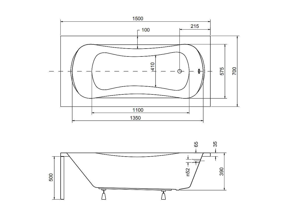 Baignoire rectangulaire 150x70 ARIA PLUS acrylique blanc + Habillage en polystyrène + Poignées + Pieds + Vidage à chromé