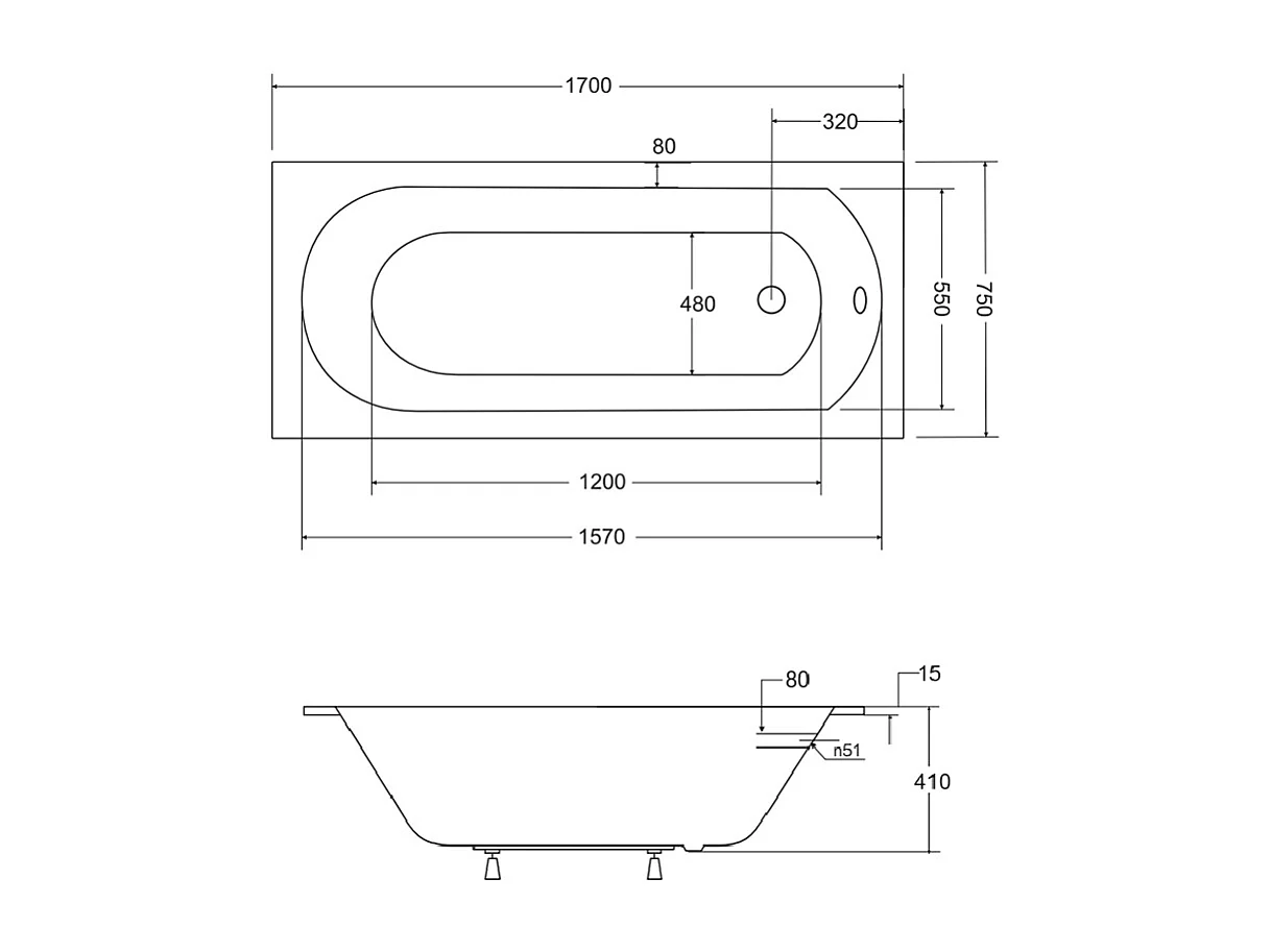 Baignoire rectangulaire 170x75 INTRICA SLIM acrylique blanc + Habillage en polystyrène (4 cm) + Pieds + Vidage à chromé