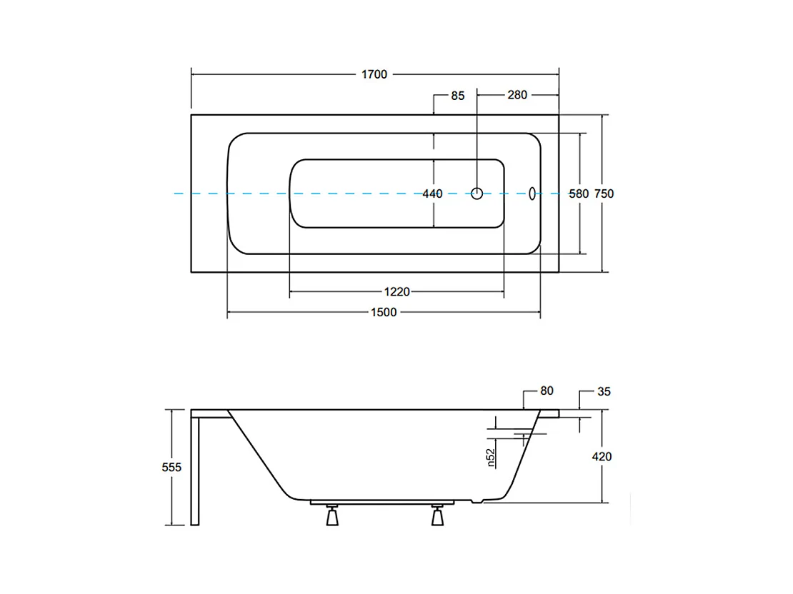 Baignoire rectangulaire 170x75 TALIA PREMIUM acrylique blanc + Support stabilisateur en polystyrène + Poignées + Repose Tête + Pieds + Vidage à chromé