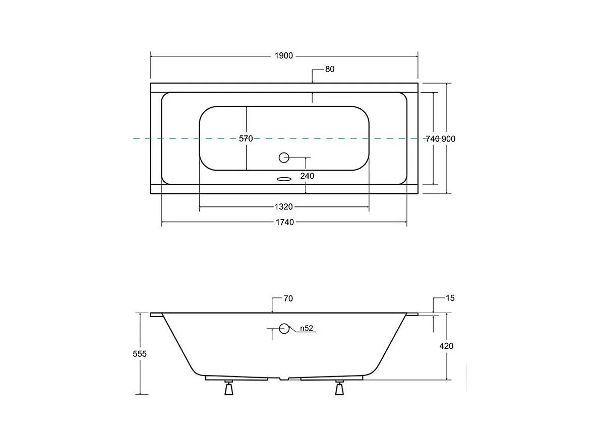 Baignoire rectangulaire 190x90 QUADRO SLIM acrylique blanc + Habillage en polystyrène + Pieds + Vidage à chromé