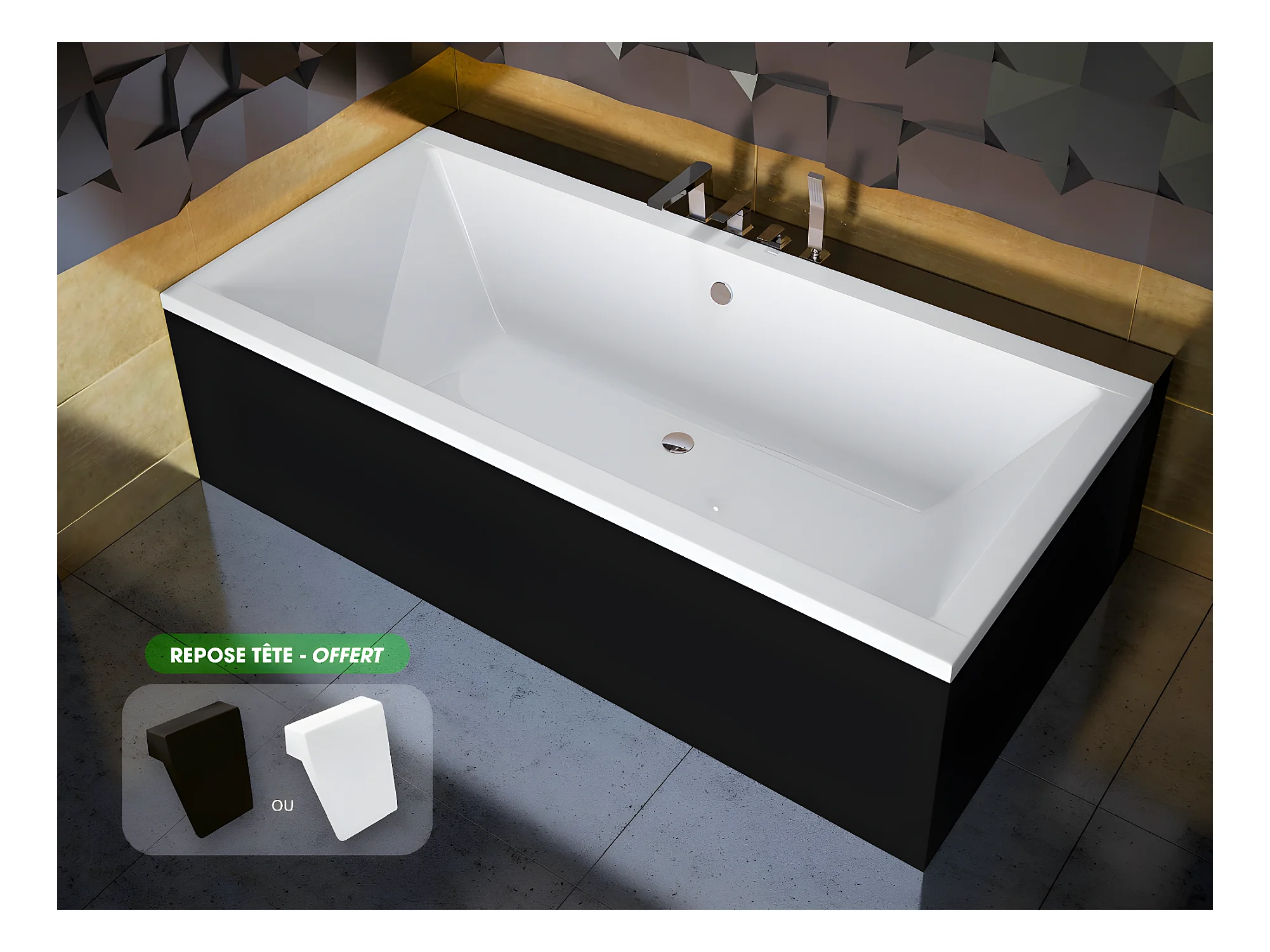 Baignoire rectangulaire - avec Tablier Noir Mat et Repose Tête OFFERT | QUADRO | 155 x 70 cm