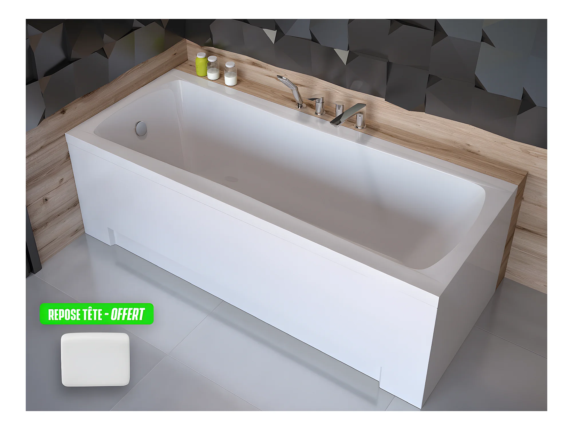 Baignoire rectangulaire + tablier blanc + repose tête - OPTIMA - 170 x 70 cm