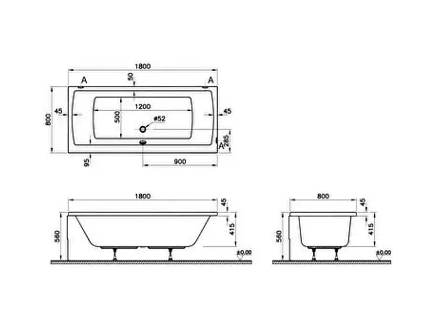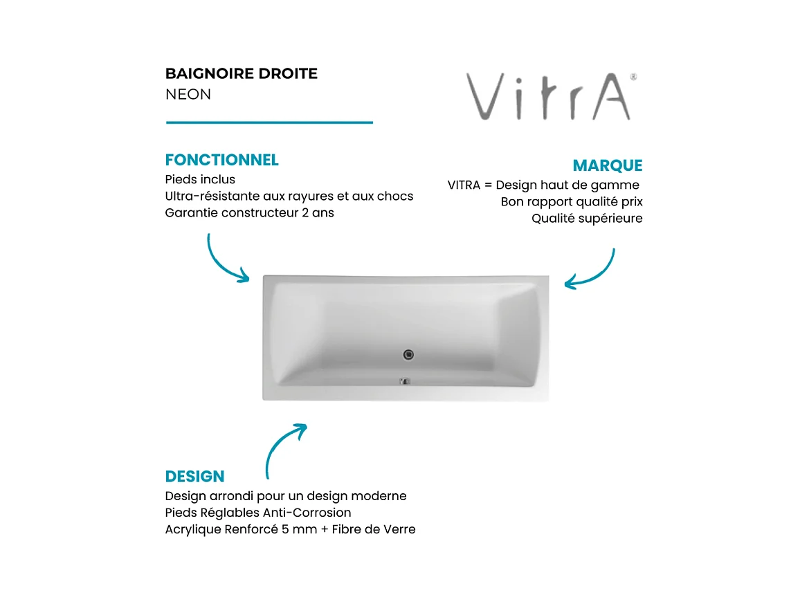 Baignoire rectangulaire VITRA Neon avec pied 180x80cm Blanc