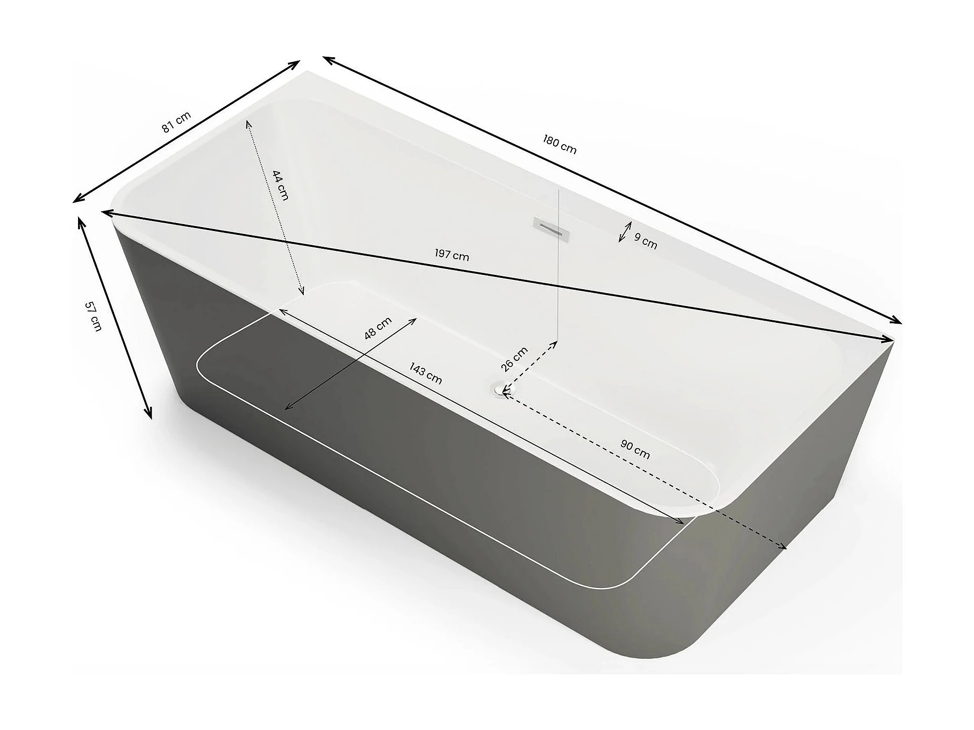 Baignoire Ilot Mint 180 grise 180 x81 x57 cm, by SPALINA