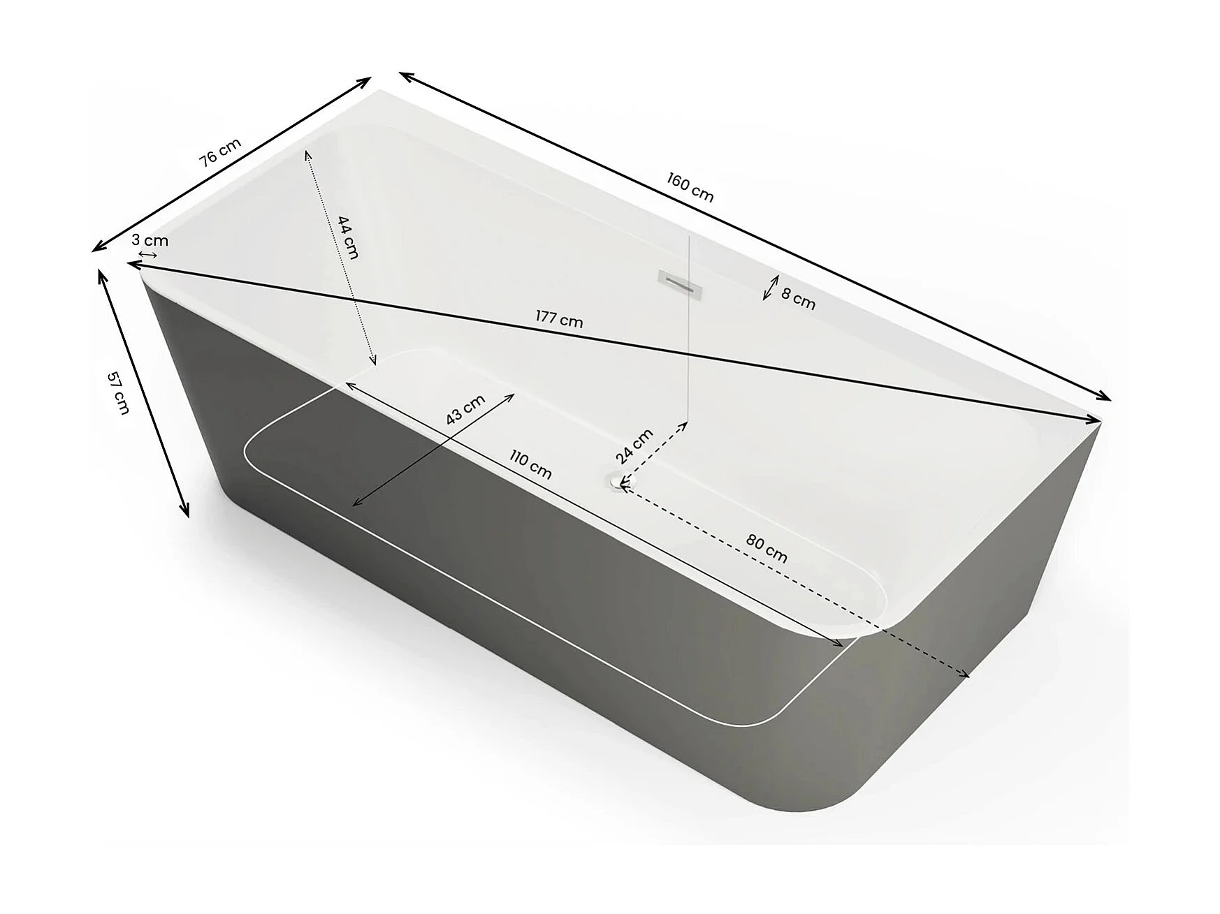 Baignoire Ilot Mint 160 grise 160 x75 x57 cm, by SPALINA