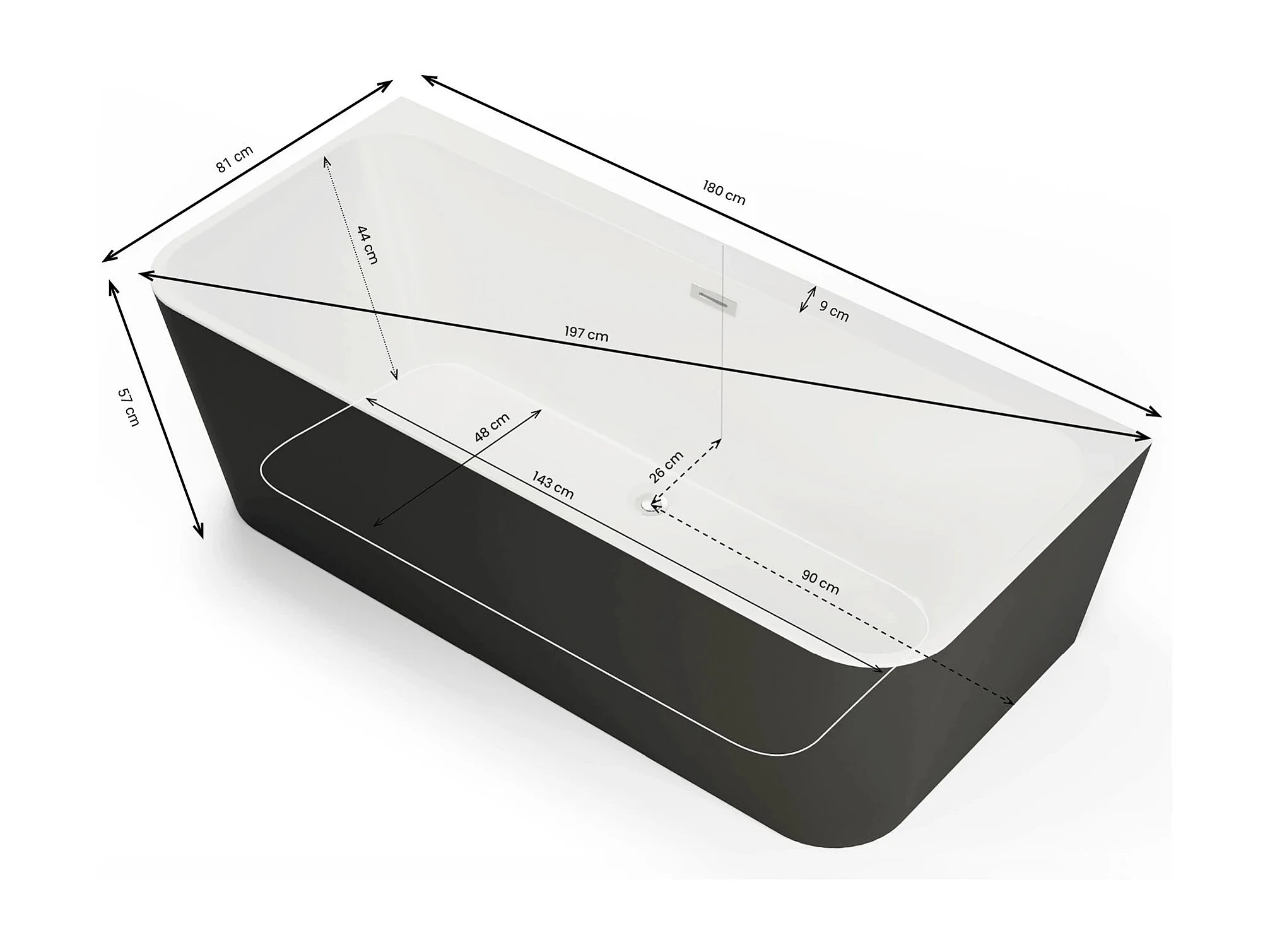 Baignoire Ilot Mint 180 noire 180 x81 x57 cm, by SPALINA