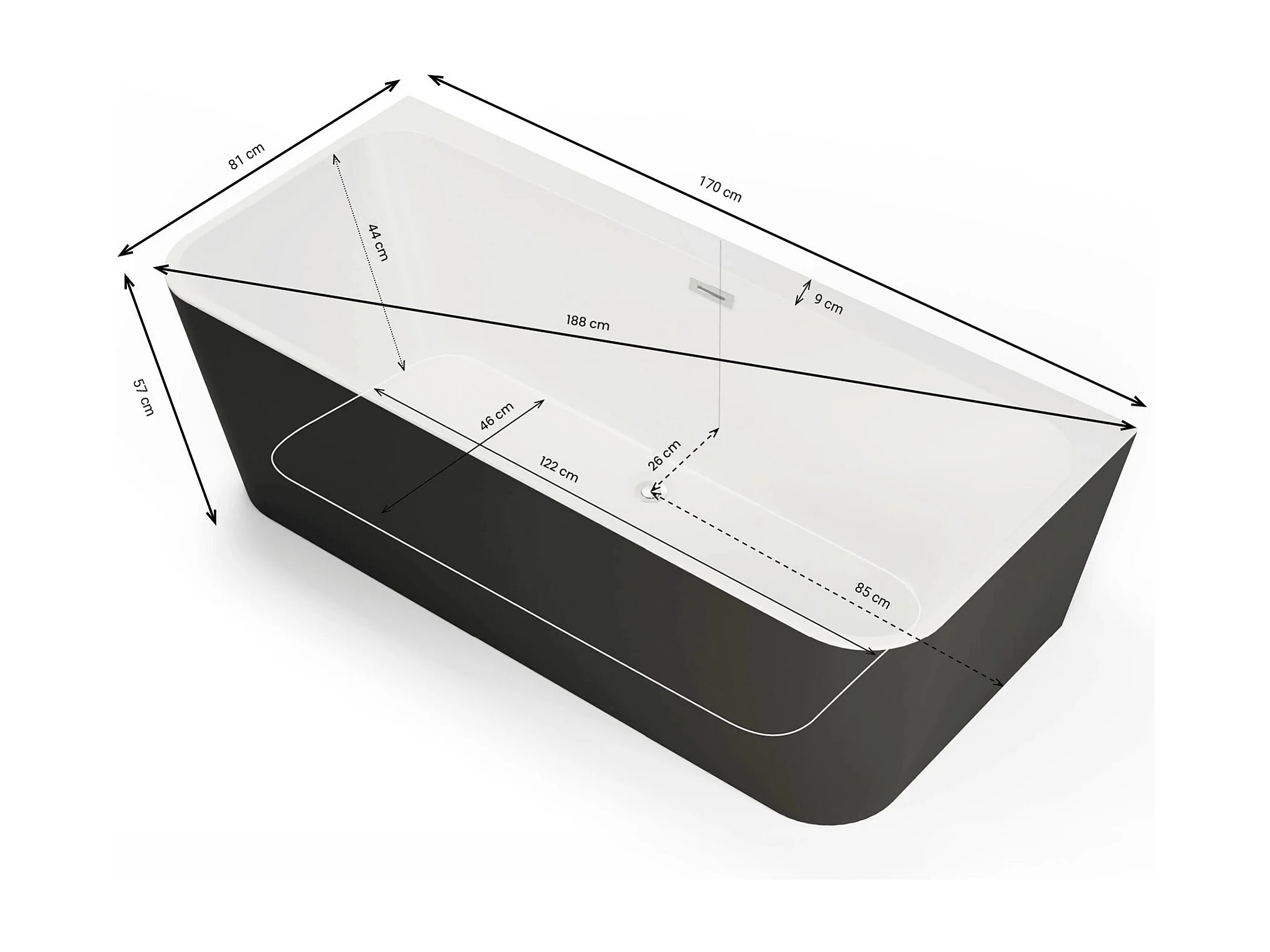 Baignoire Ilot Mint 170 noire 170 x81 x57 cm, by SPALINA