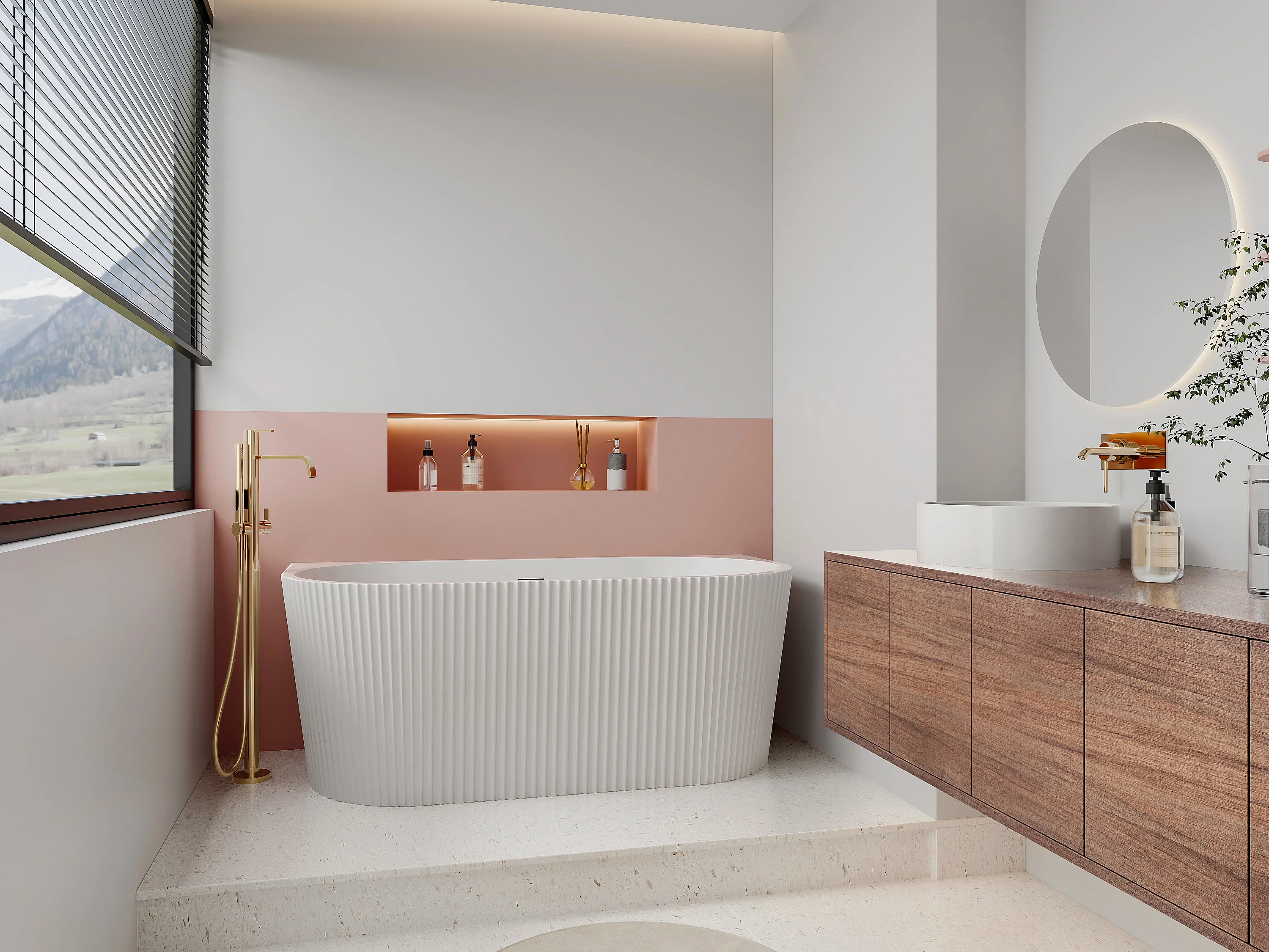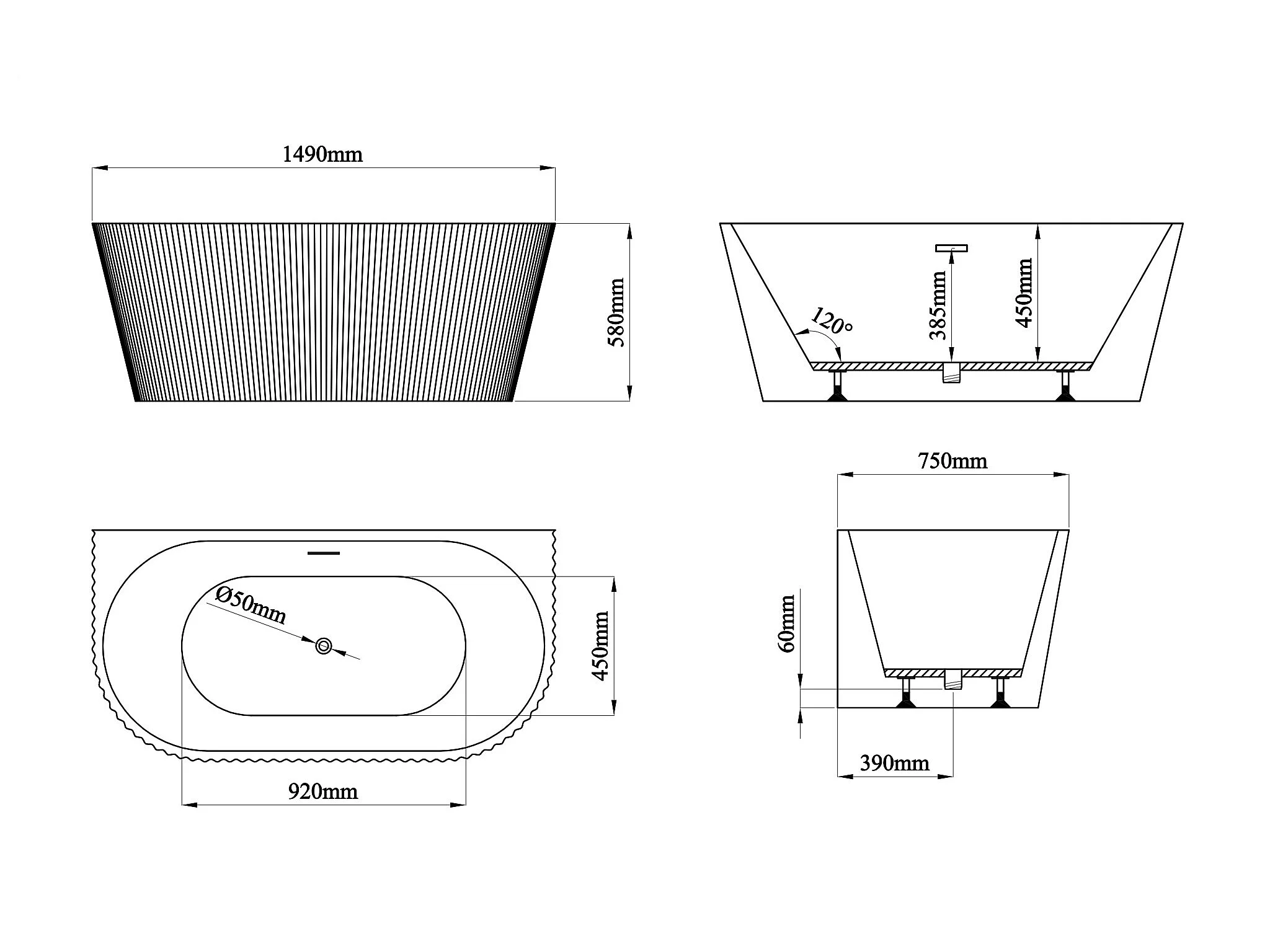 Baignoire semi îlot striée - 206 L - 149 x 75 x 58 cm - Blanc brillant - Acrylique - ZELINA
