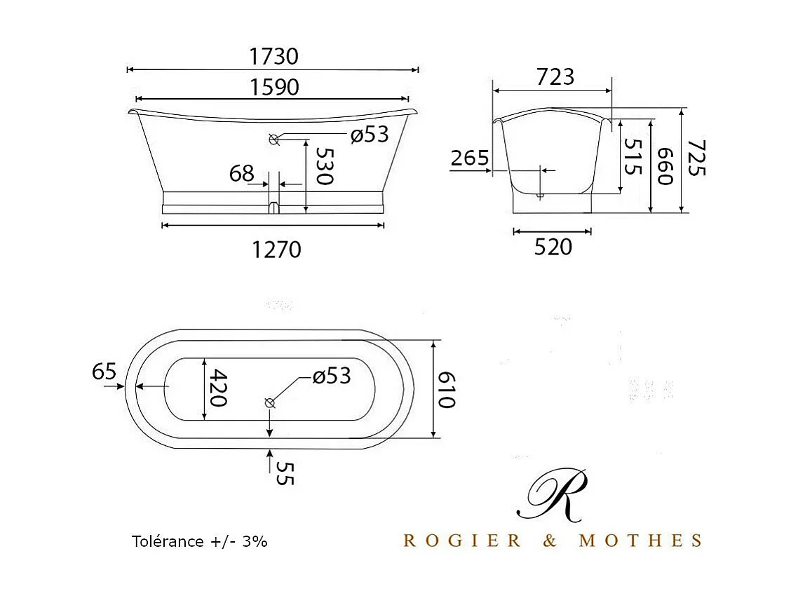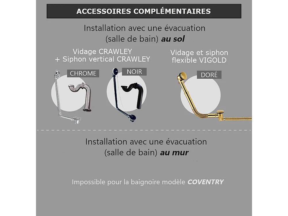 Baignoire sur socle en fonte émaillée COVENTRY Blanche 173 cm Peinture blanche (baignoire et socle)