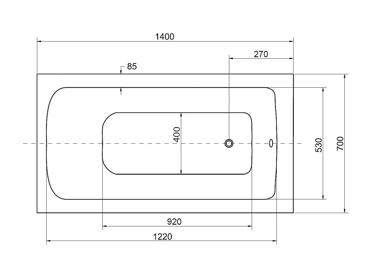 Baignoire VENETO avec tablier 140-150 x 70 et 160-170 x 75 - Dimensions: 140 x 70 cm