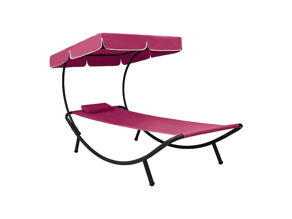Lit de repos d'extérieur avec auvent et oreiller Rose