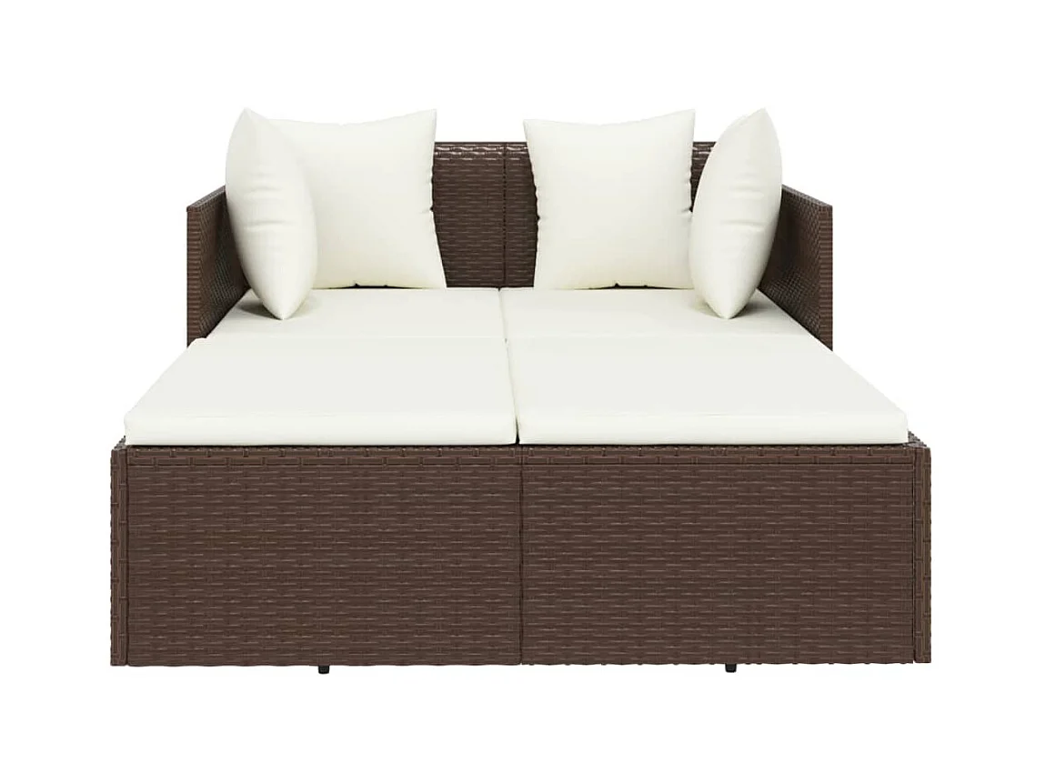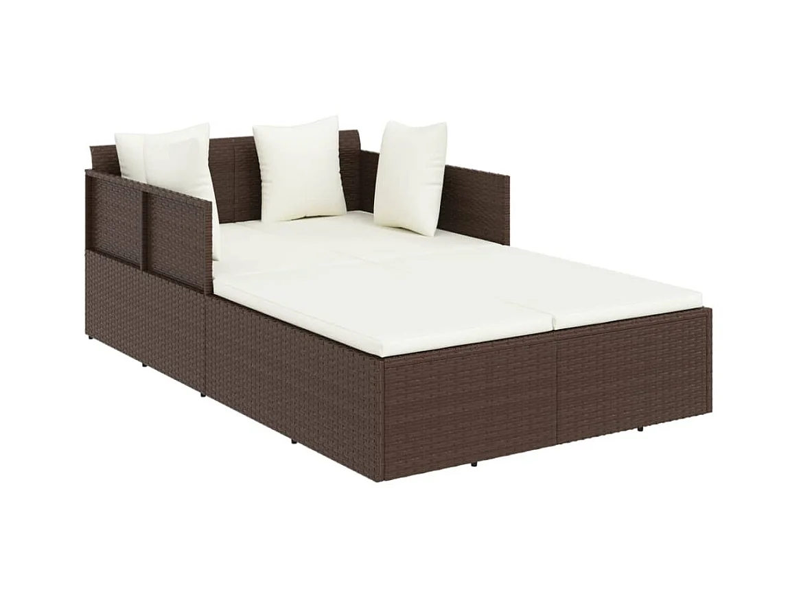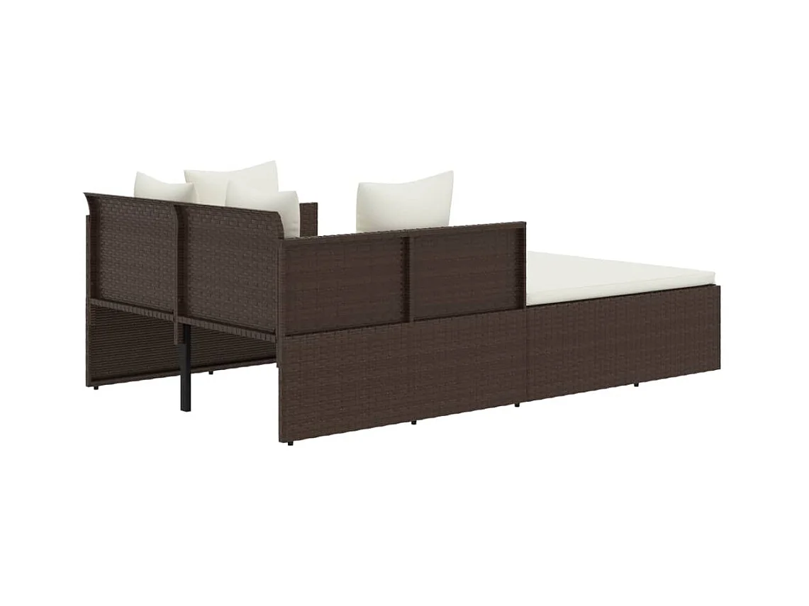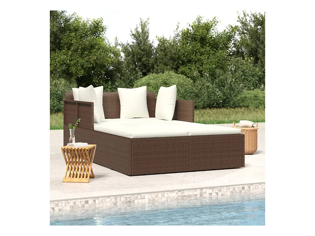 Bain de soleil avec coussins marron 182x118x63 cm résine tressée SEF45785