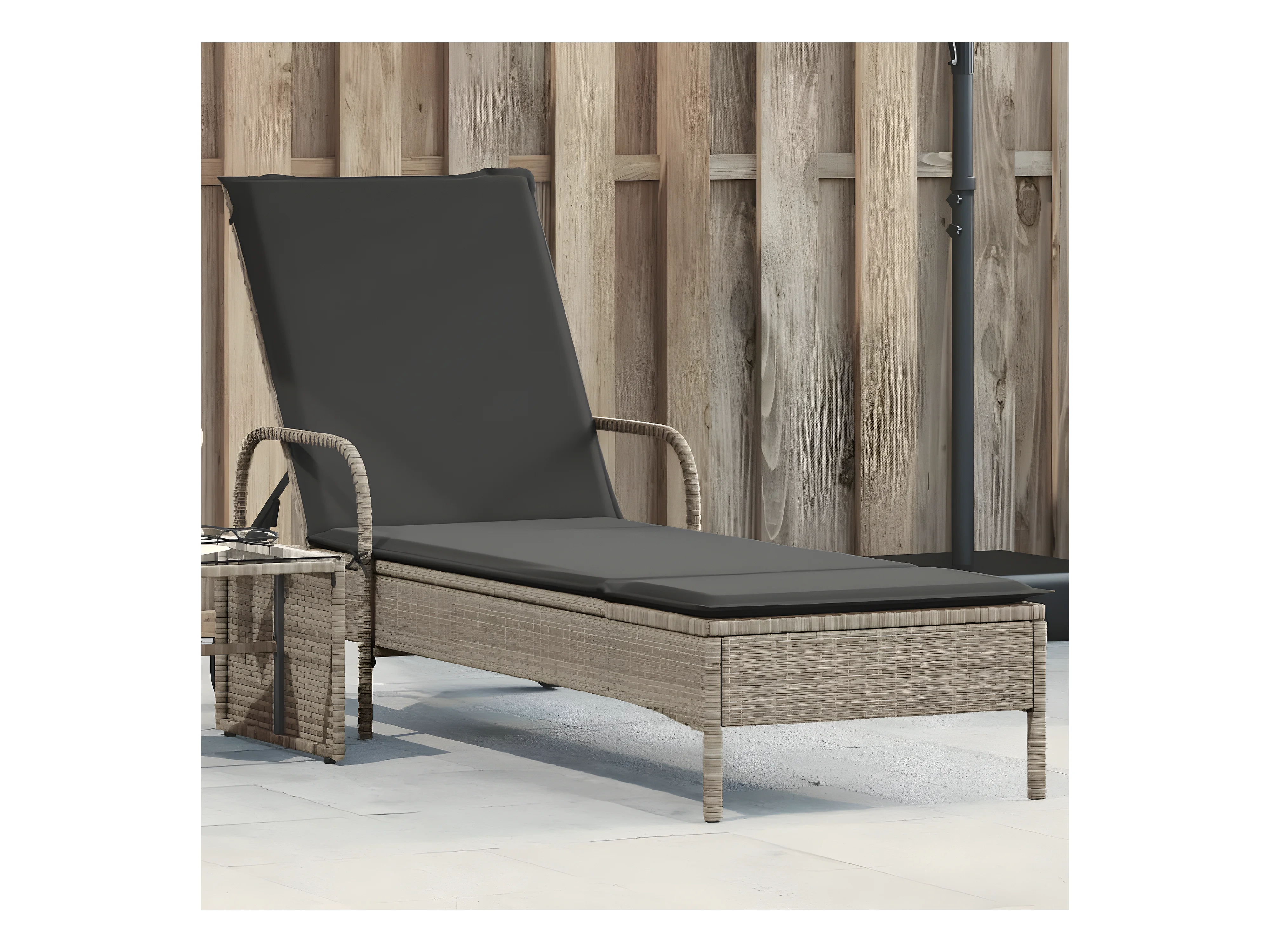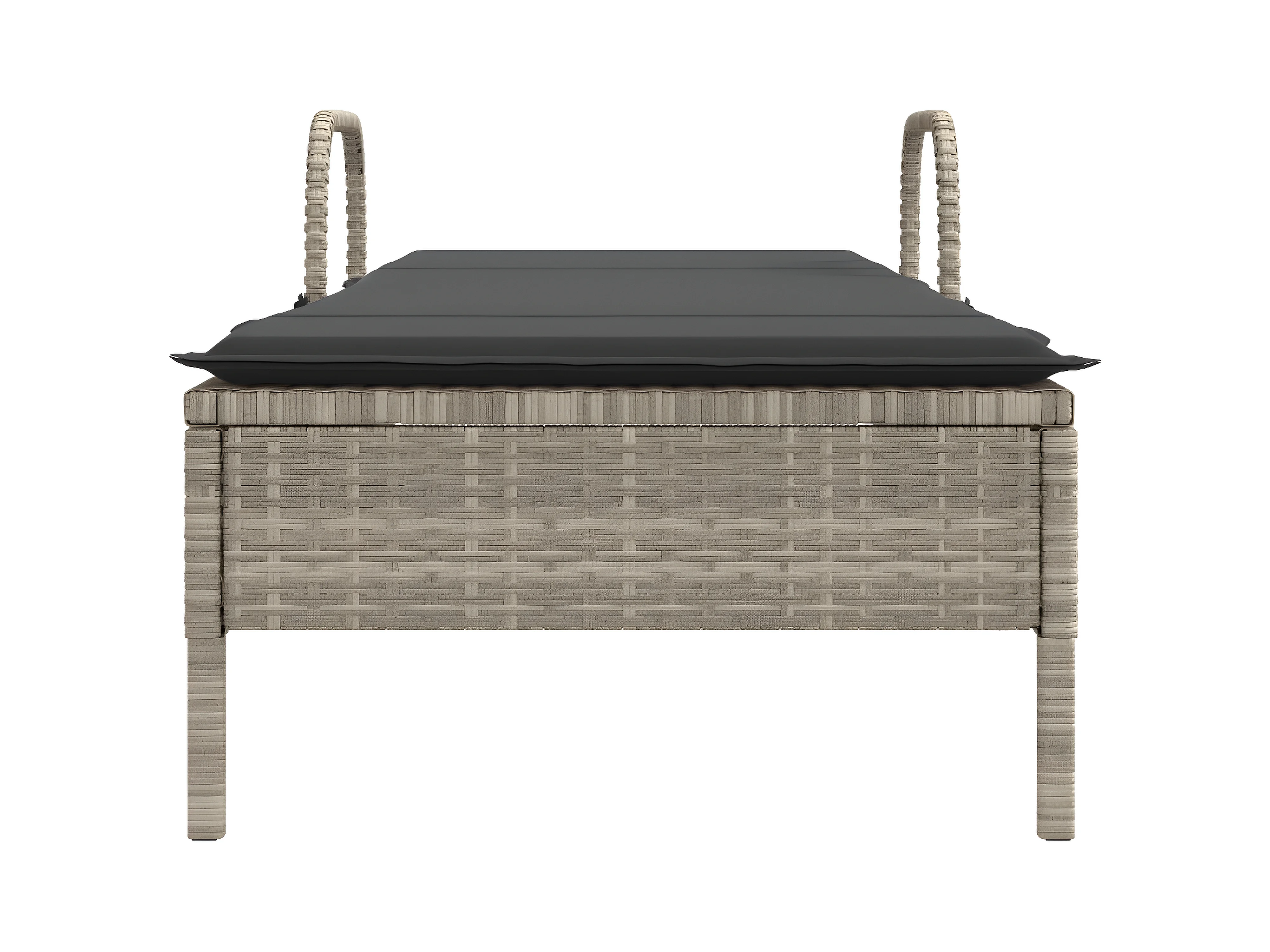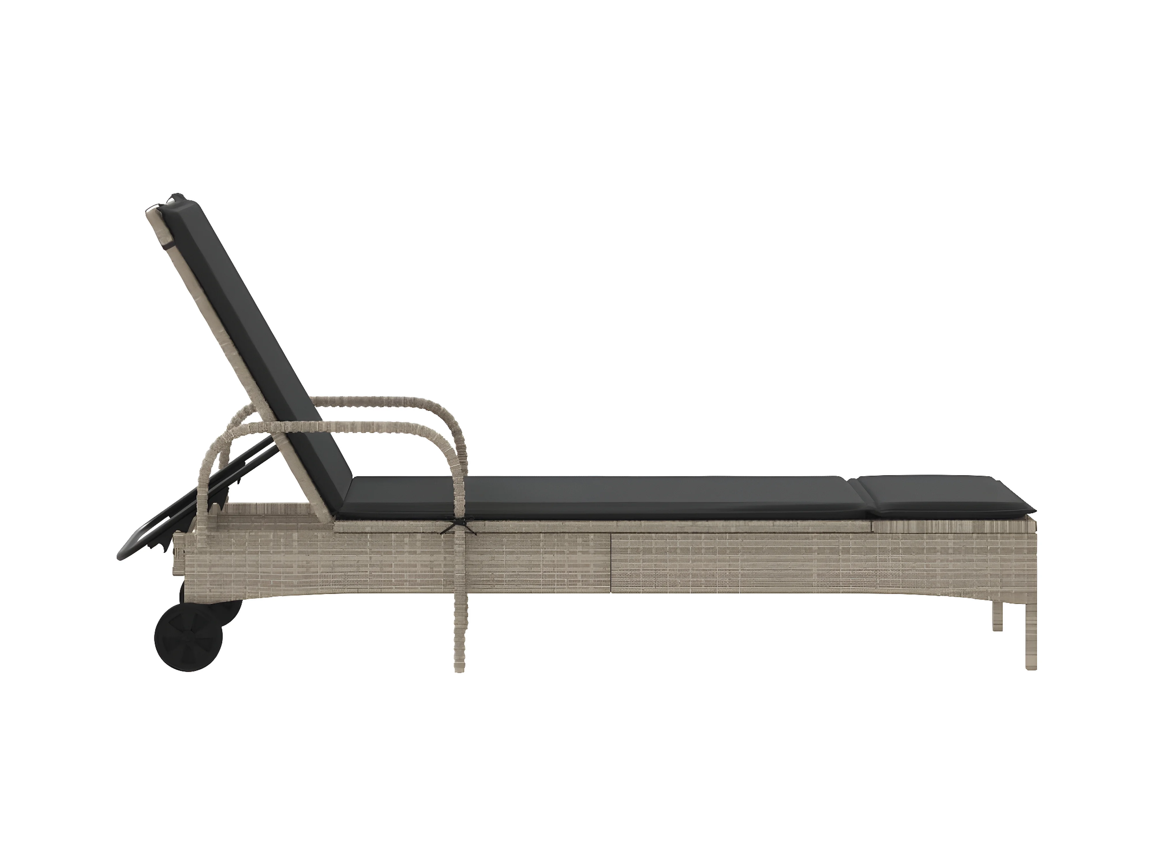 Bain de soleil avec roues et coussins gris clair résine tressée FR85223