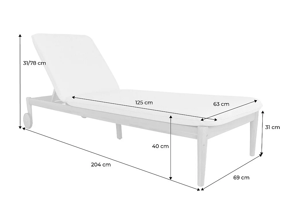 Bain de soleil bois d'acacia multi positions avec roulettes naturel - Sola