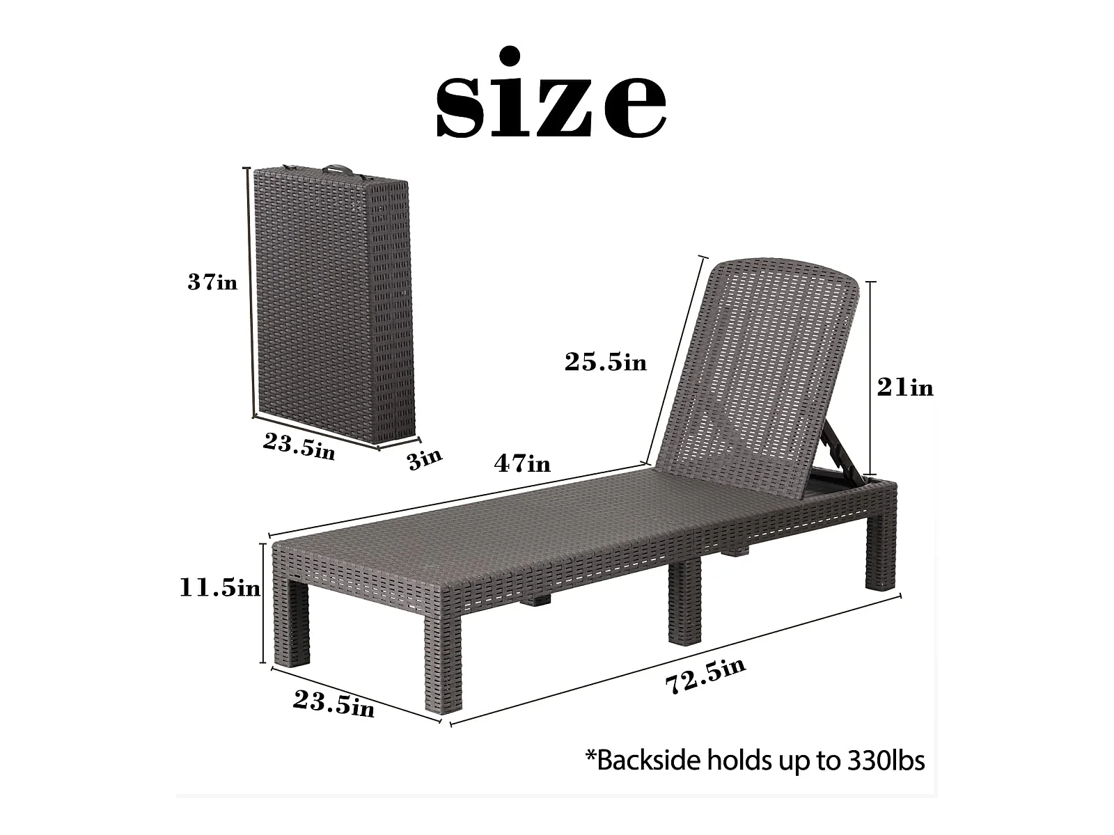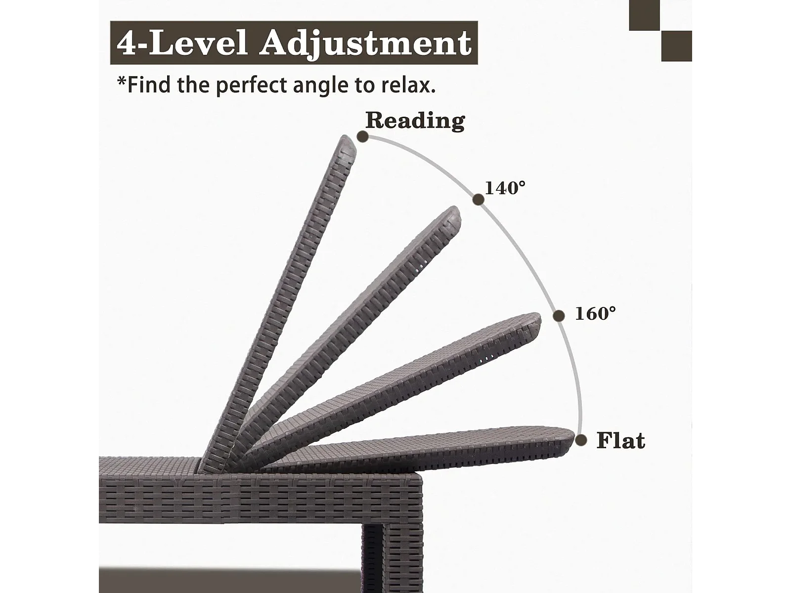 Bain de soleil - Chaise longue - Résine imitation rotin tressé - Dossier réglable - Gris Sparkle