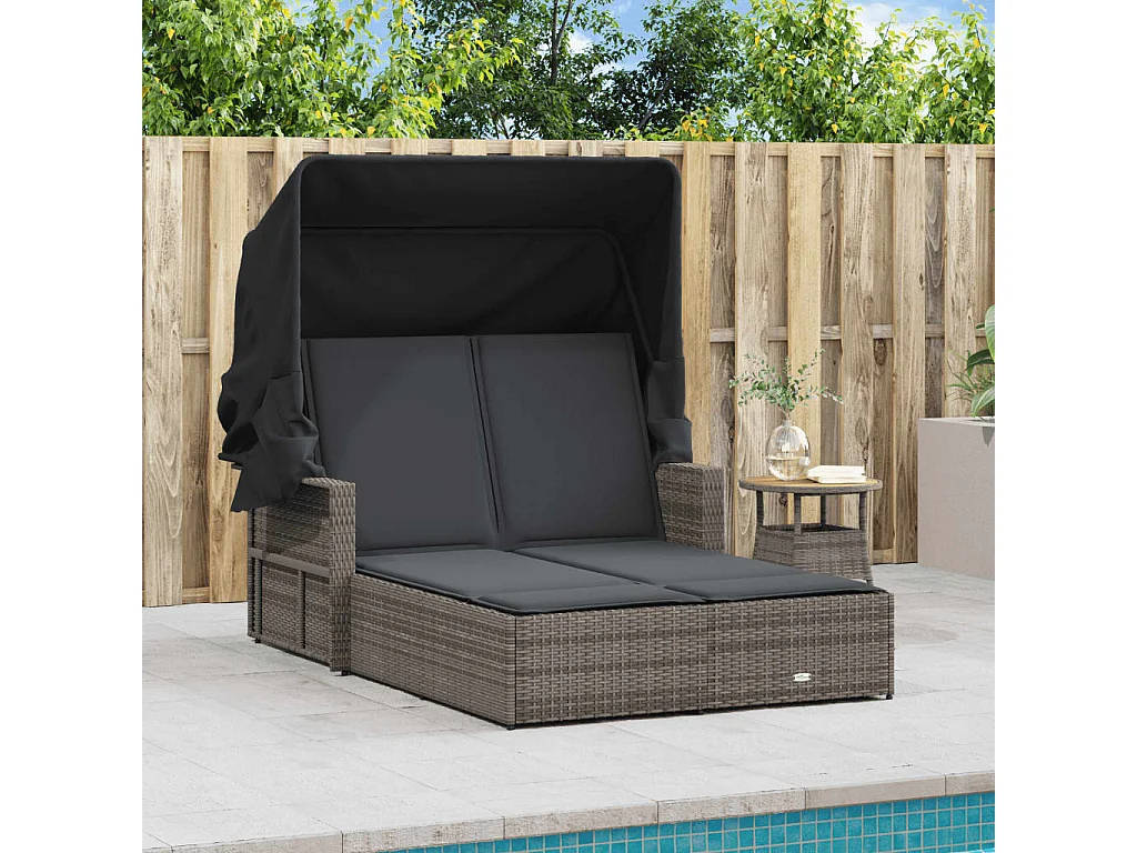 Bain de soleil double et auvent et coussins gris résine tressée FR561981