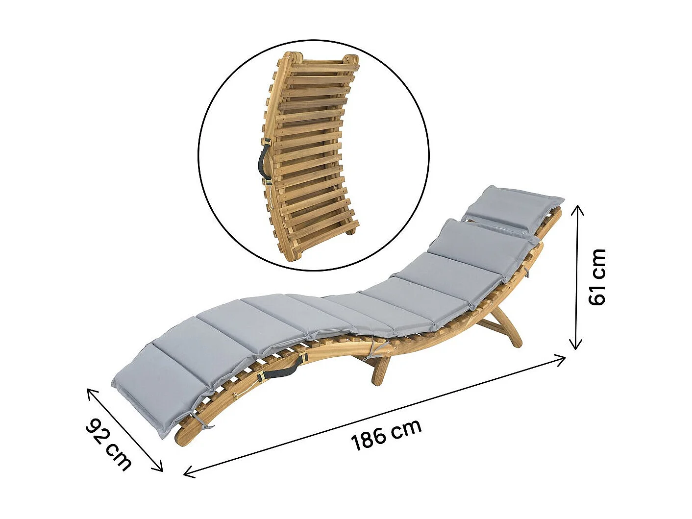Bain de soleil en bois avec coussins inclus "Jakarta" - Gris