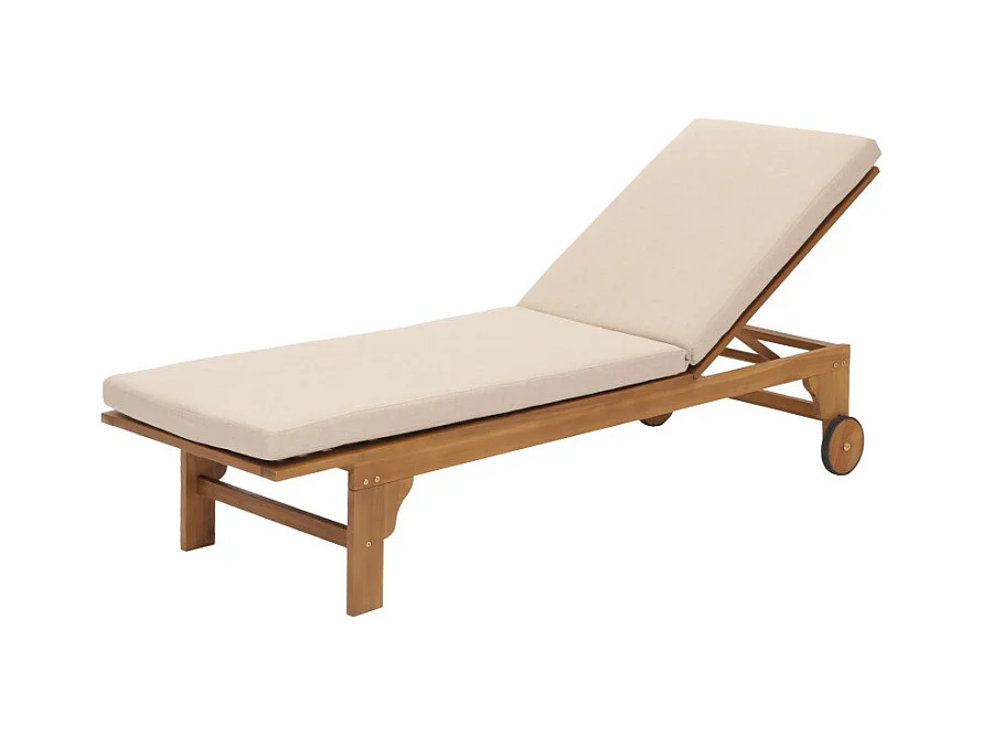 Bain de soleil HWC-N48, Bain de soleil de jardin Relax chaise longue, bois massif acacia certifié MVG ~ coussin crème-be