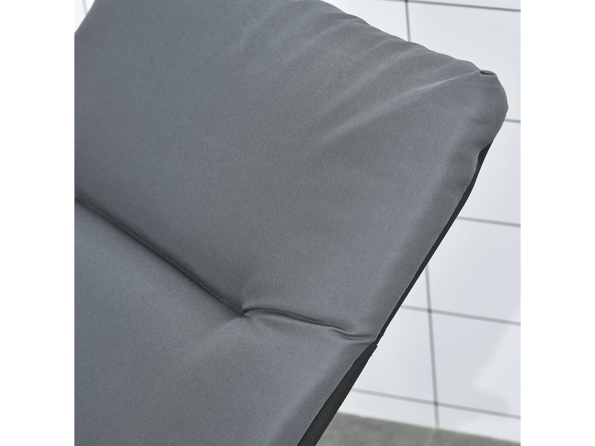Bain de soleil pliable transat inclinable 6 positions grand confort avec matelas + accoudoirs acier polyester gris