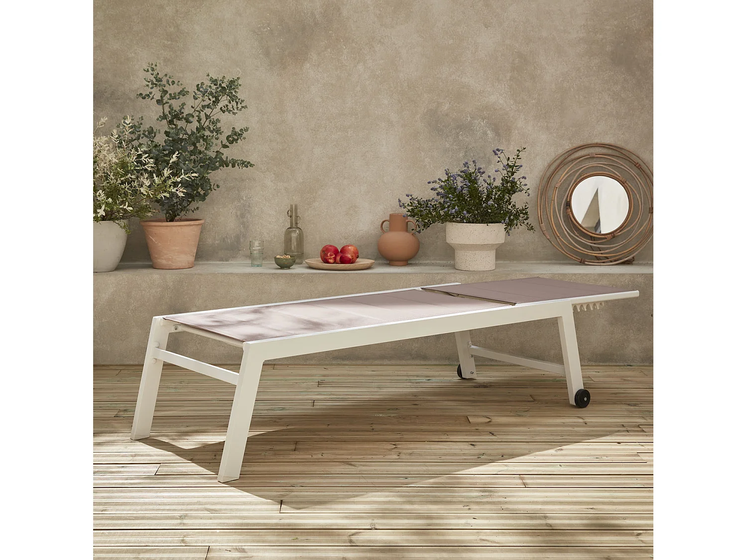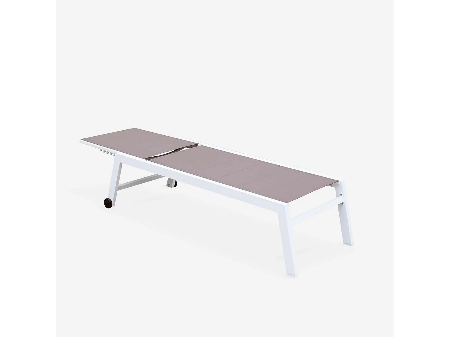 bain de soleil - Solis - Transat textilène matelassé et aluminium 6 positions. structure blanche. textilène taupe