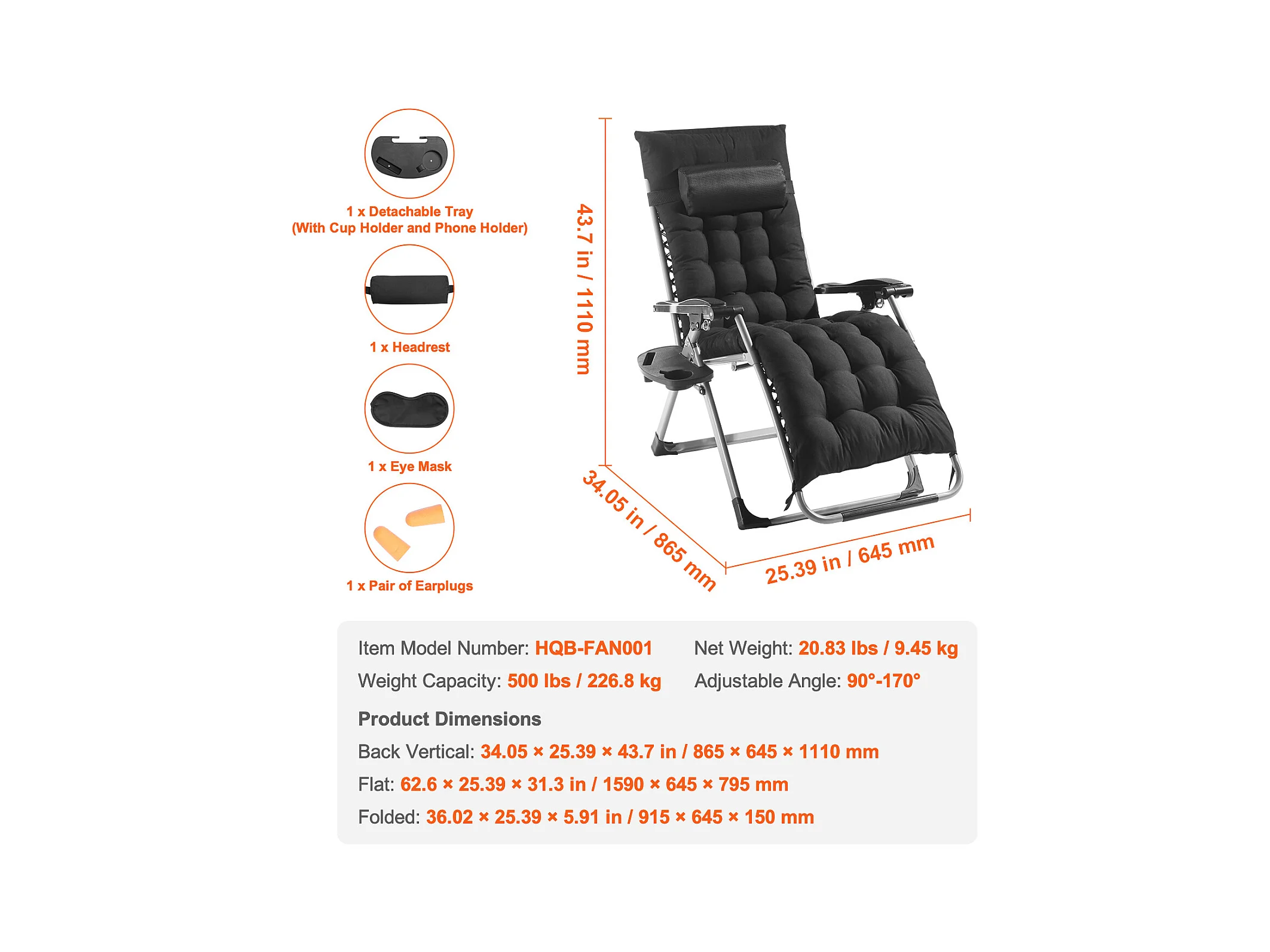 Bain de Soleil SucceBuy Chaise Longue Inclinable Zero Gravity 66 cm pour une Utilisation en Intérieur et en Extérieur