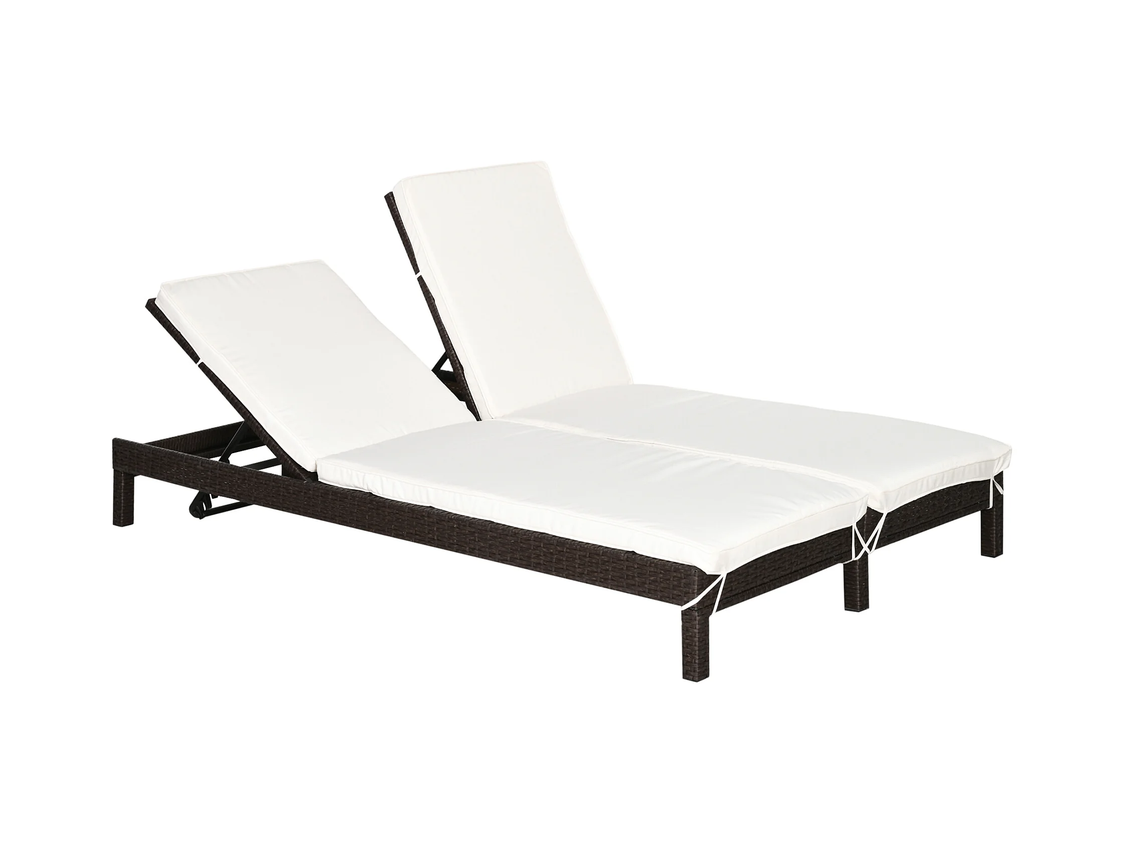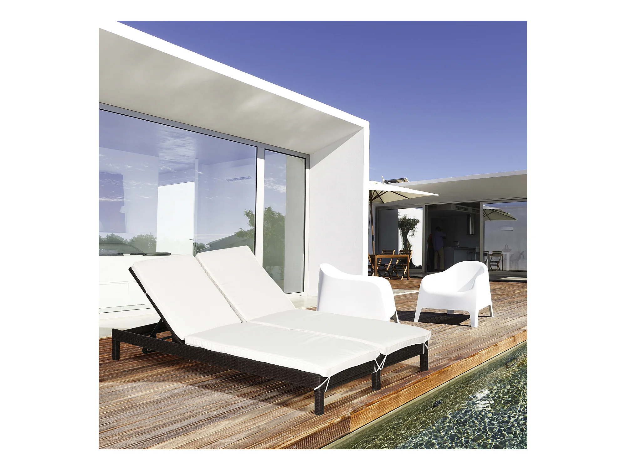 Bain de soleil transat 2 places - grand confort - dossier inclinable multi-positions - matelas fournis - résine tressée chocolat