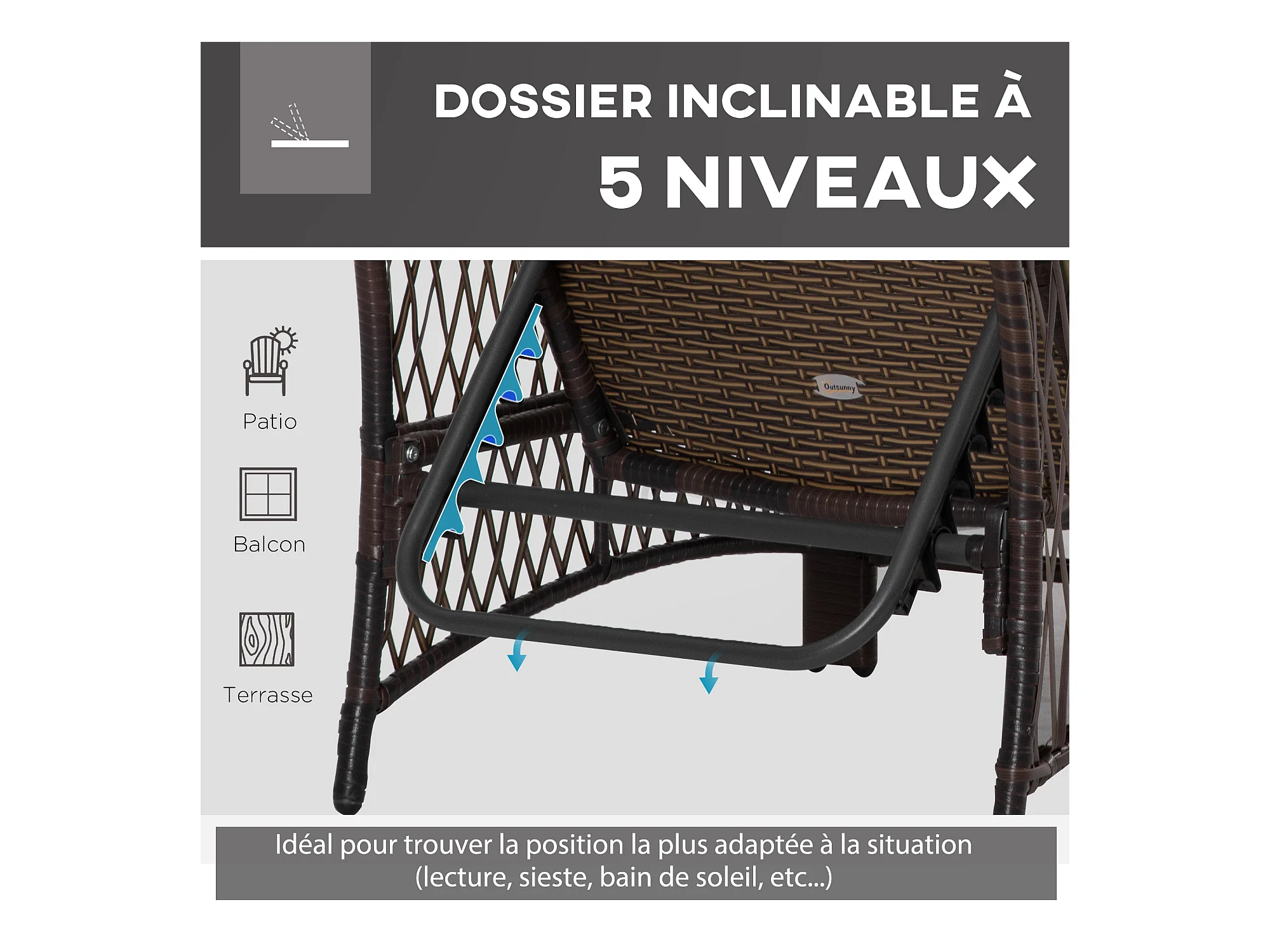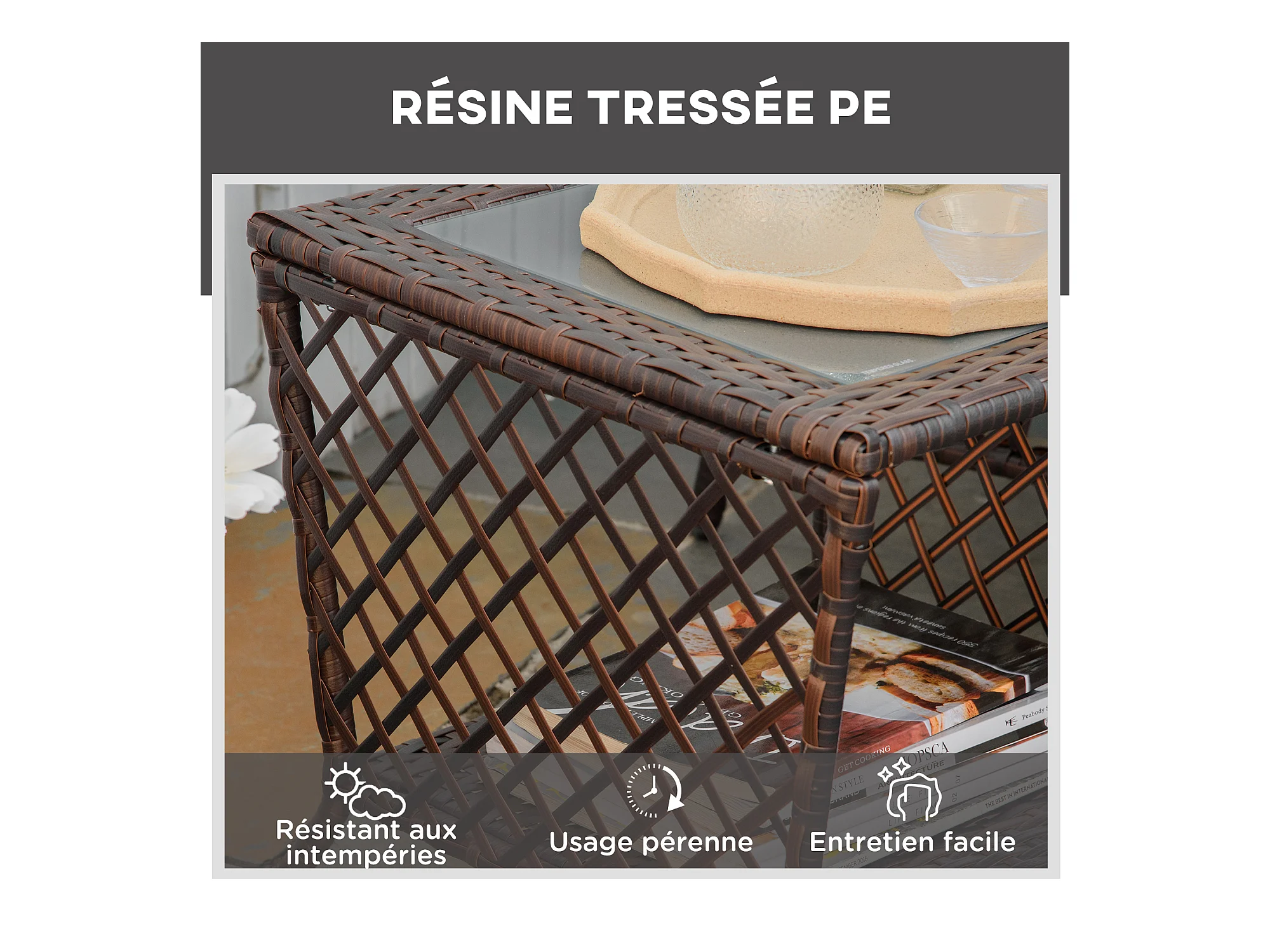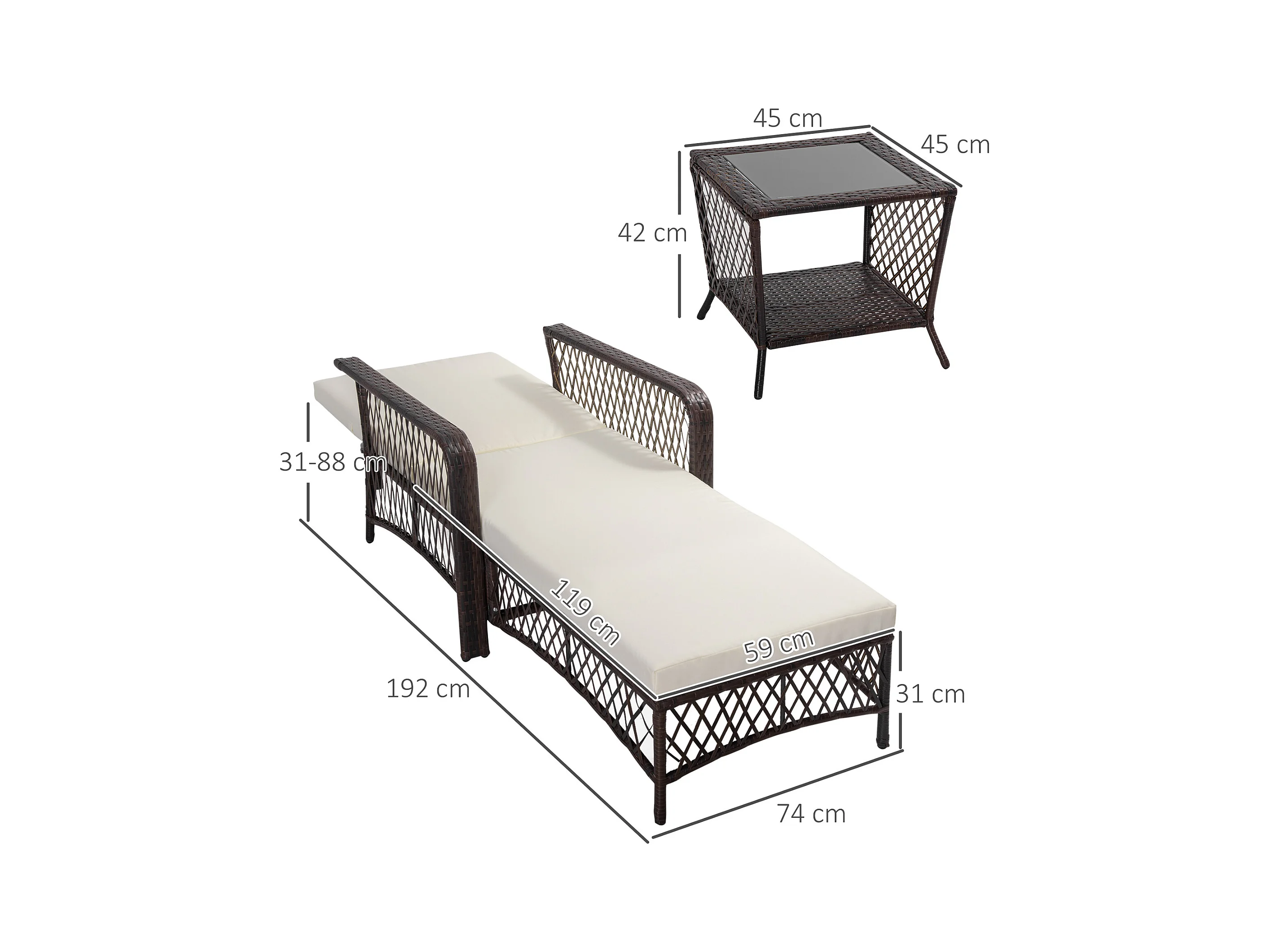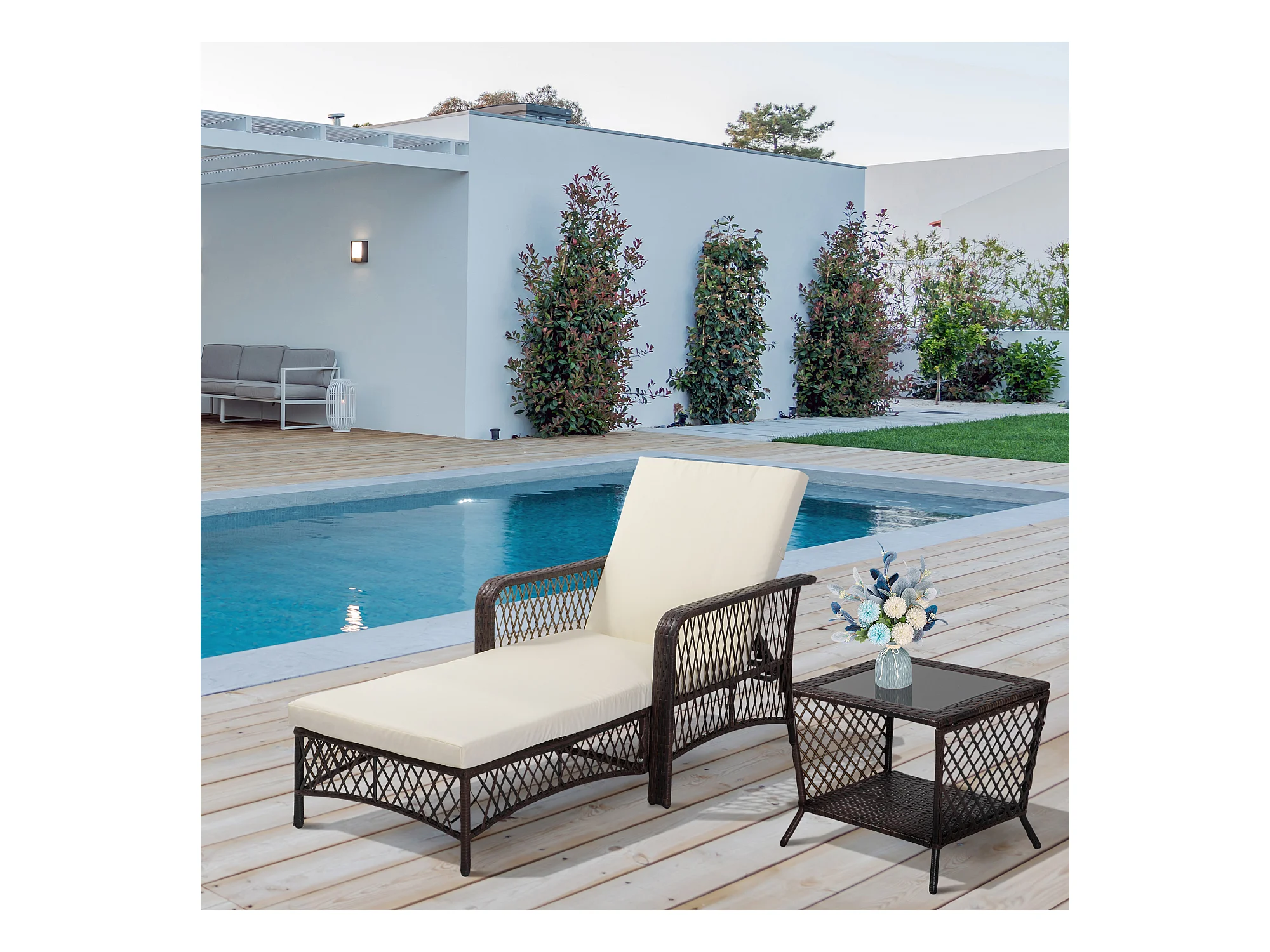 Bain de soleil transat design colonial avec table basse et matelas - dossier inclinable - résine tressée, polyester - marron crème