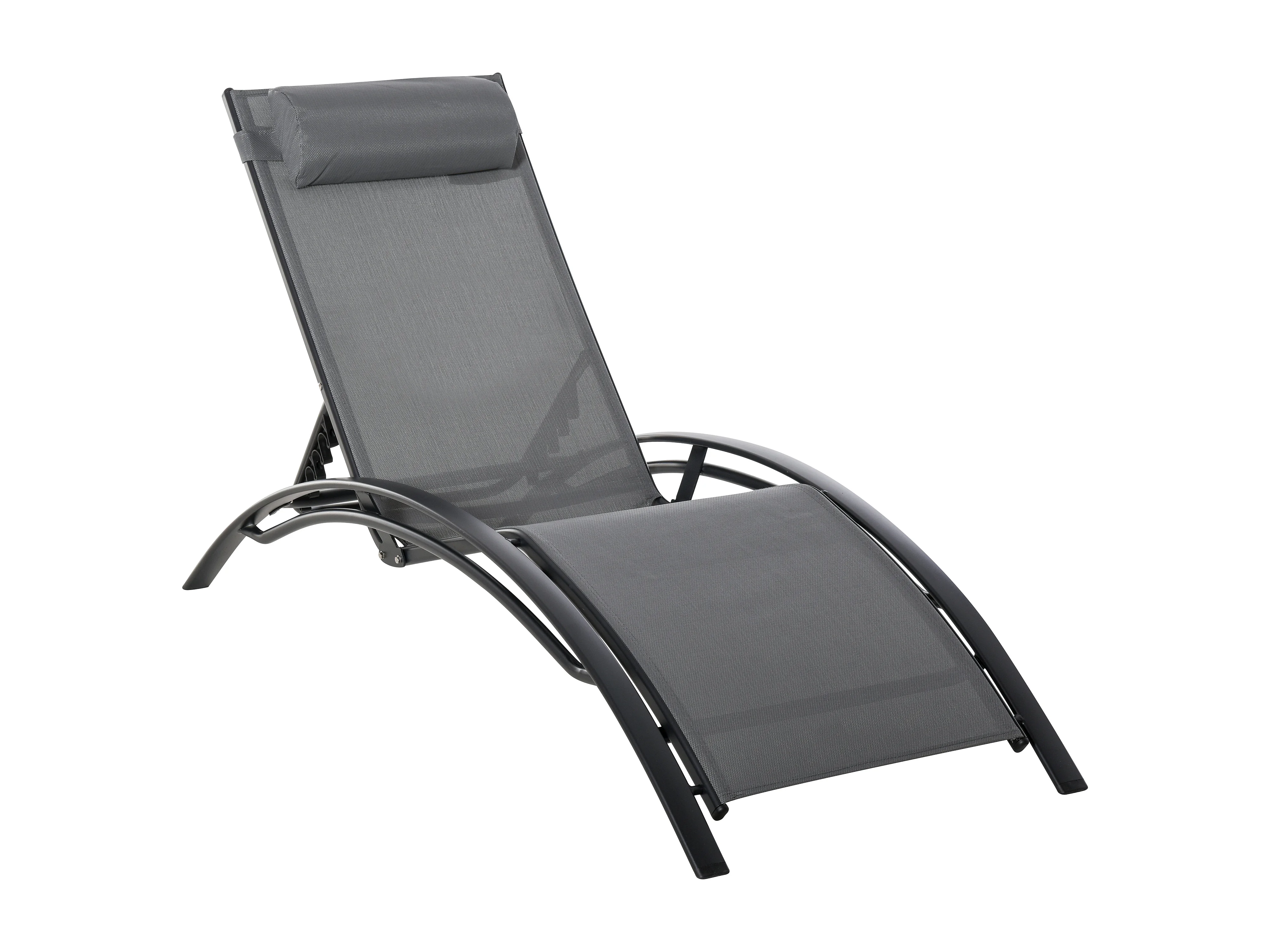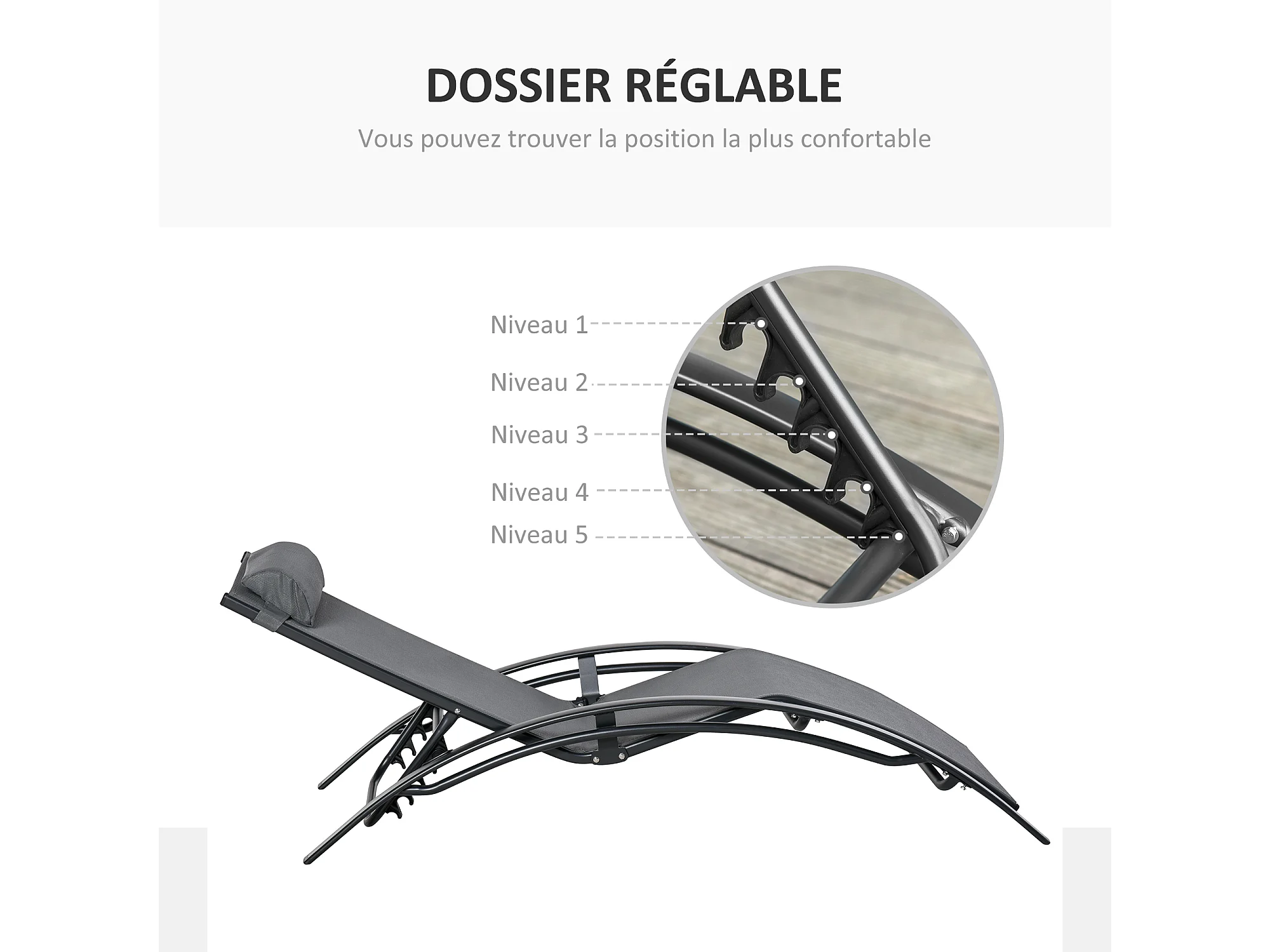 Bain de soleil transat design contemporain inclinable multi-positions tétière amovible incluse alu textilène gris