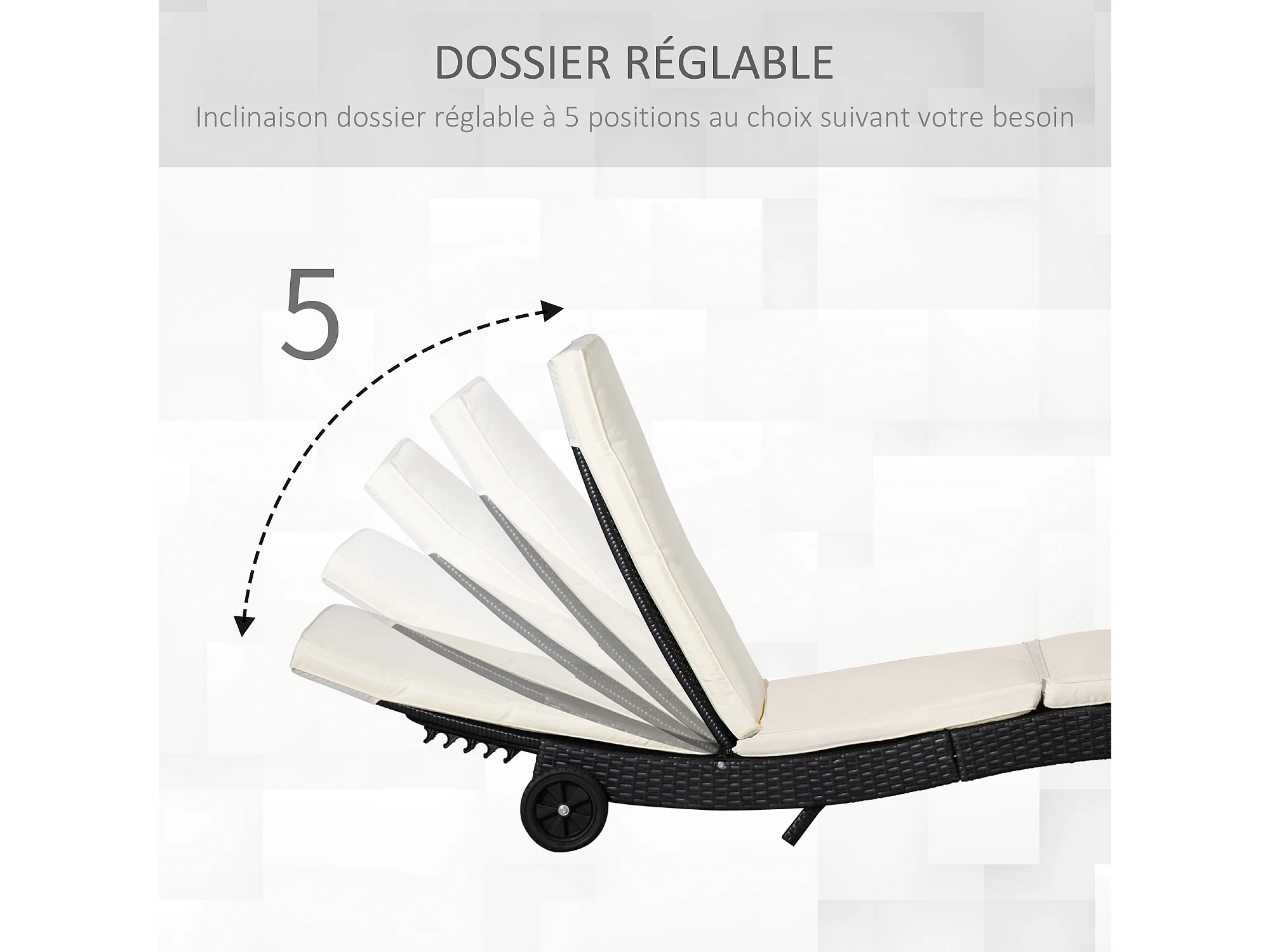 Bain de soleil transat grand confort - dossier inclinable 5 positions roulettes - matelas déhoussable inclus - résine tressée noire
