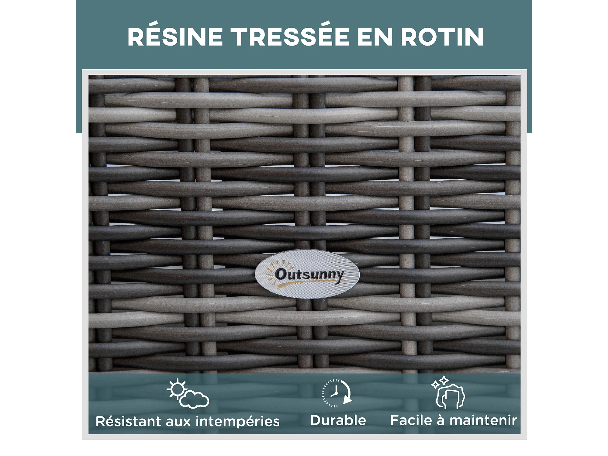 Bain de soleil transat grand confort matelas inclinaison réglable multipositions résine tressée grise