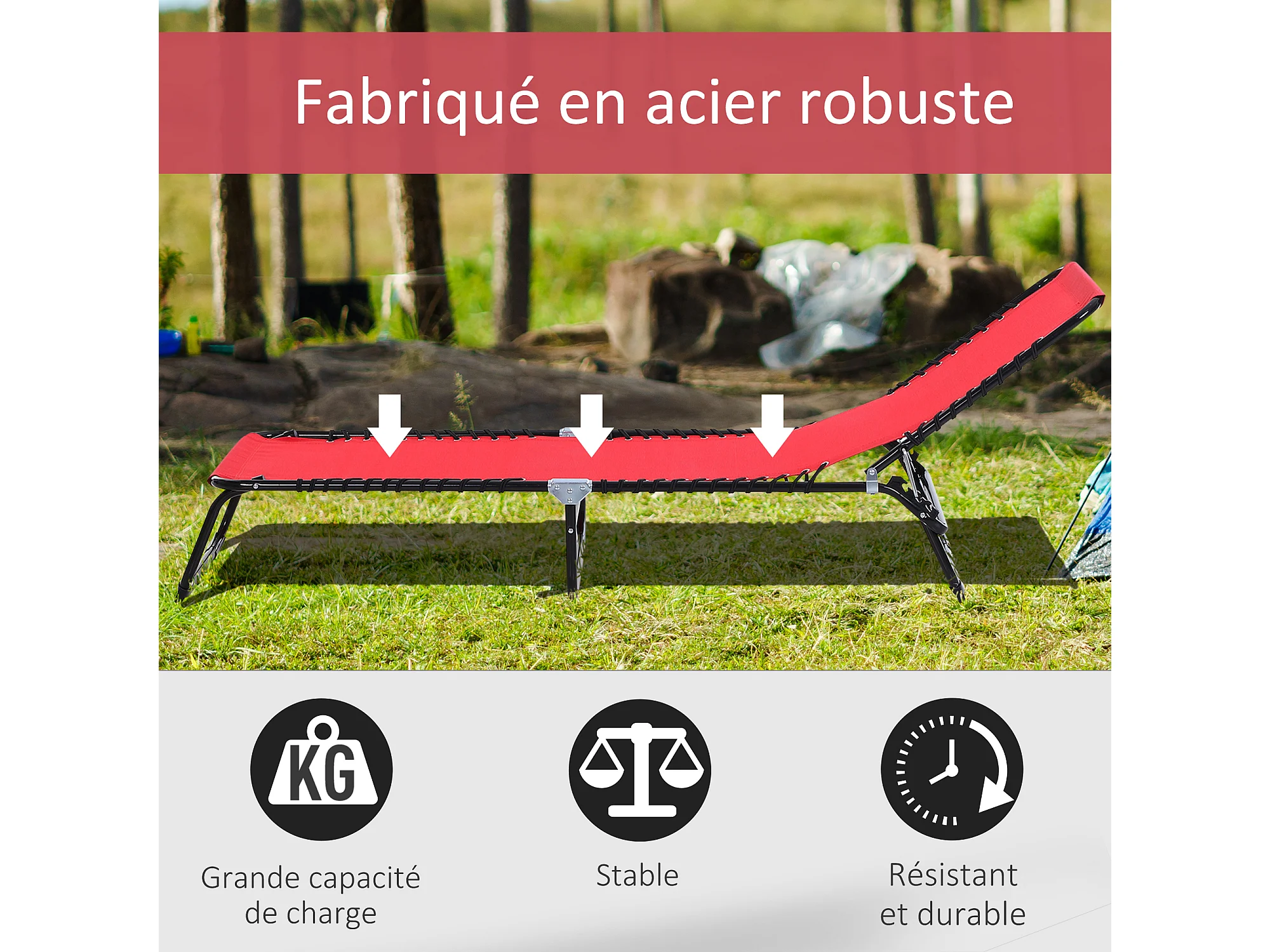 Bain de soleil avec coussin de tête Acier enduit de poudre Rouge FR62432