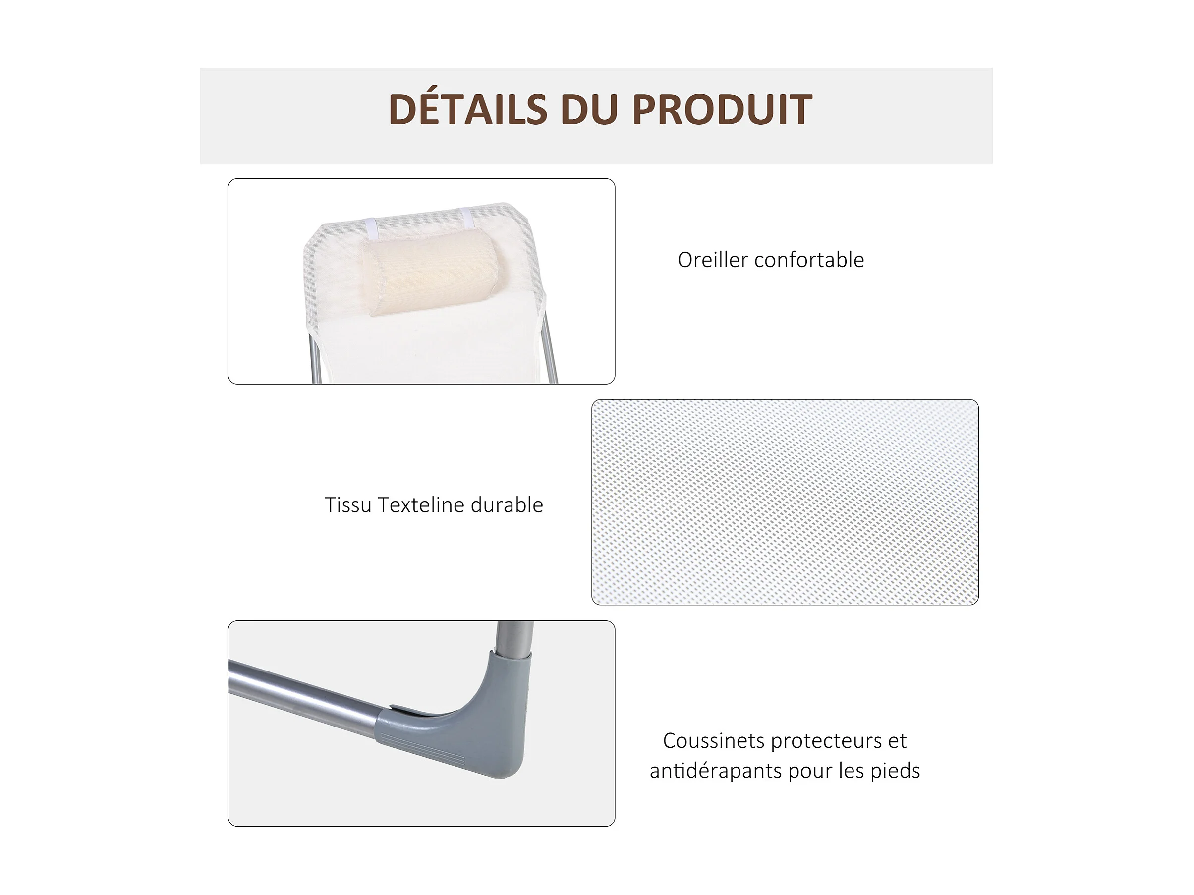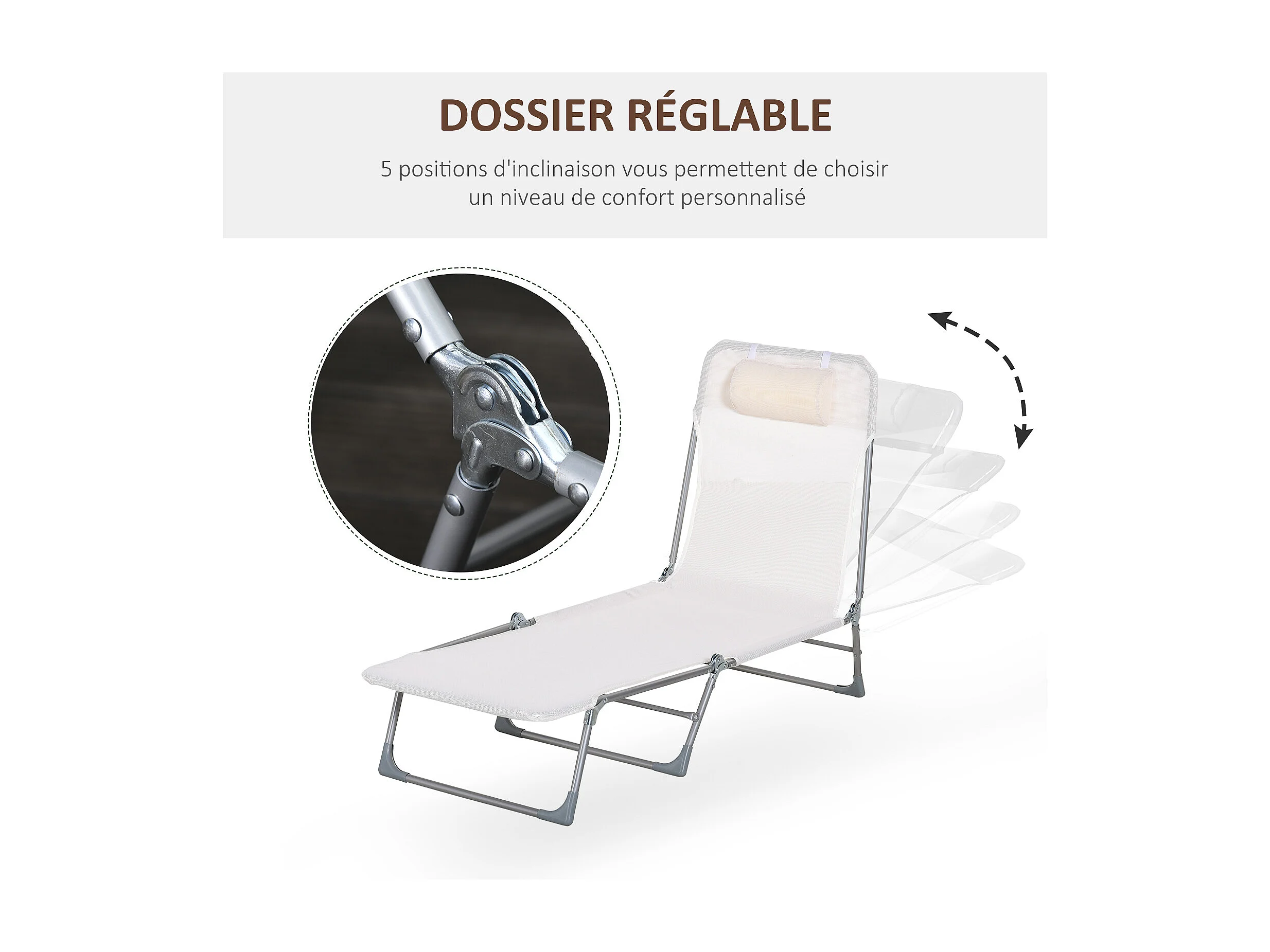 Bain de soleil transat pliable dossier réglable 5 positions acier teslin crème