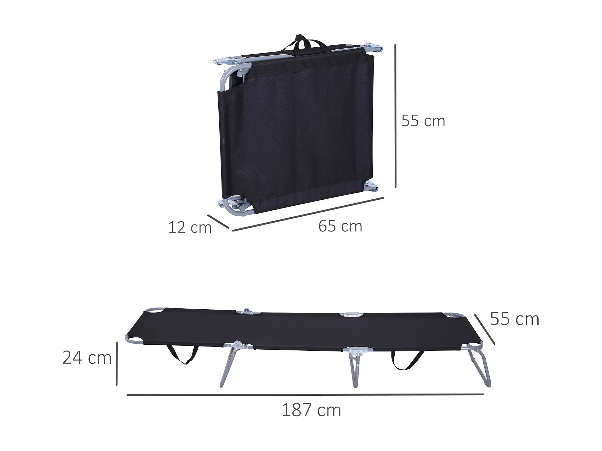 Bain de soleil transat pliable dossier réglable multipositions métal et polyester noir
