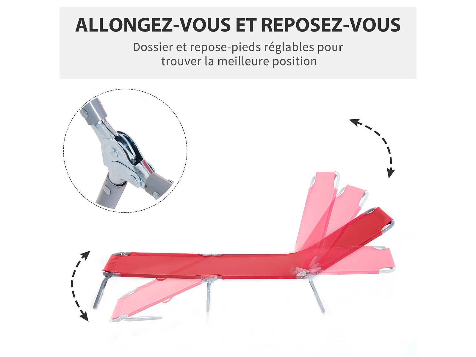 Bain de soleil transat pliable dossier réglable multipositions métal et polyester rouge
