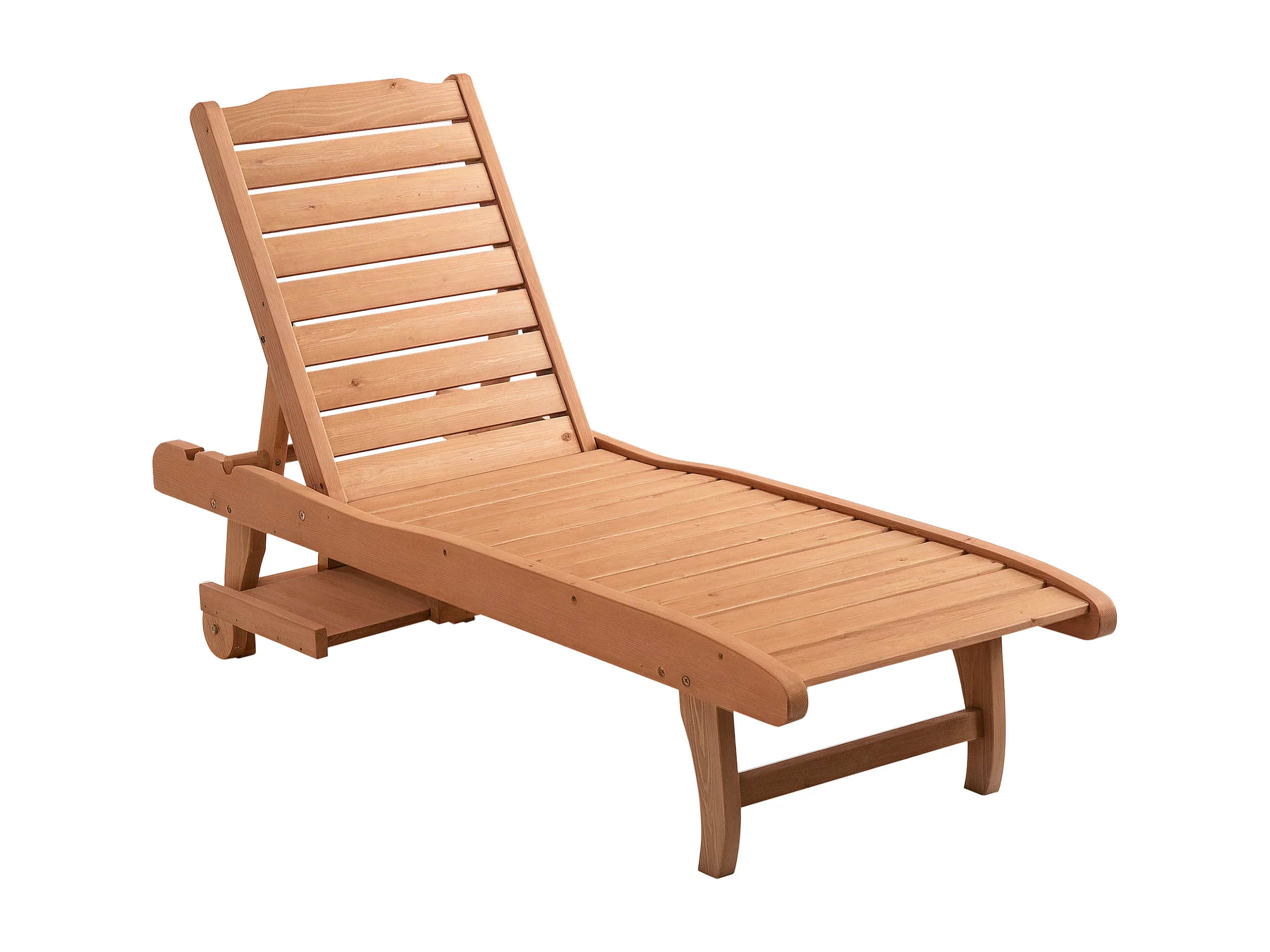 Bain de soleil transat style colonial dossier réglable 3 positions roulettes tablette support bois sapin pré-huilé