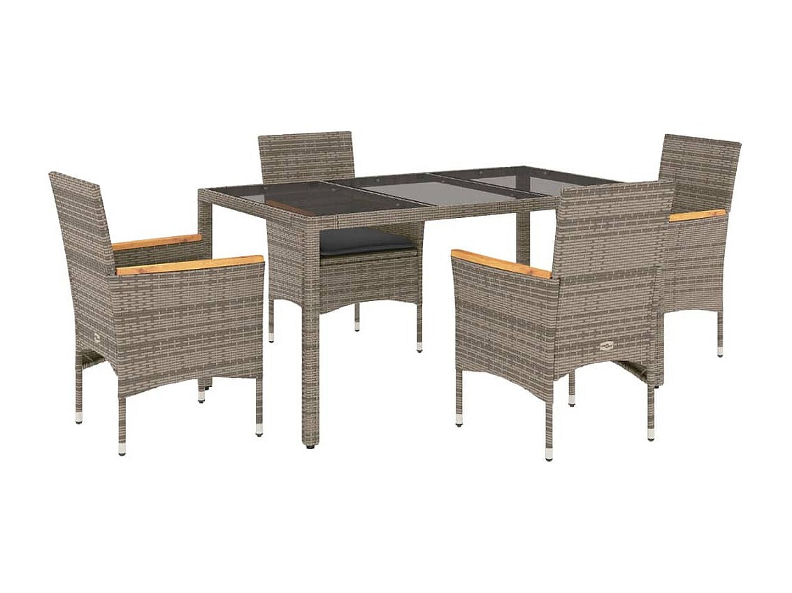 Bakersfield Ensemble à manger de jardin et coussins 5 pcs gris rotin verre