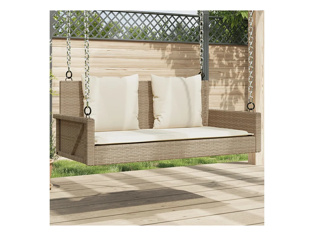 Balancelle avec coussins beige 119x56x48 cm résine tressée FR674371