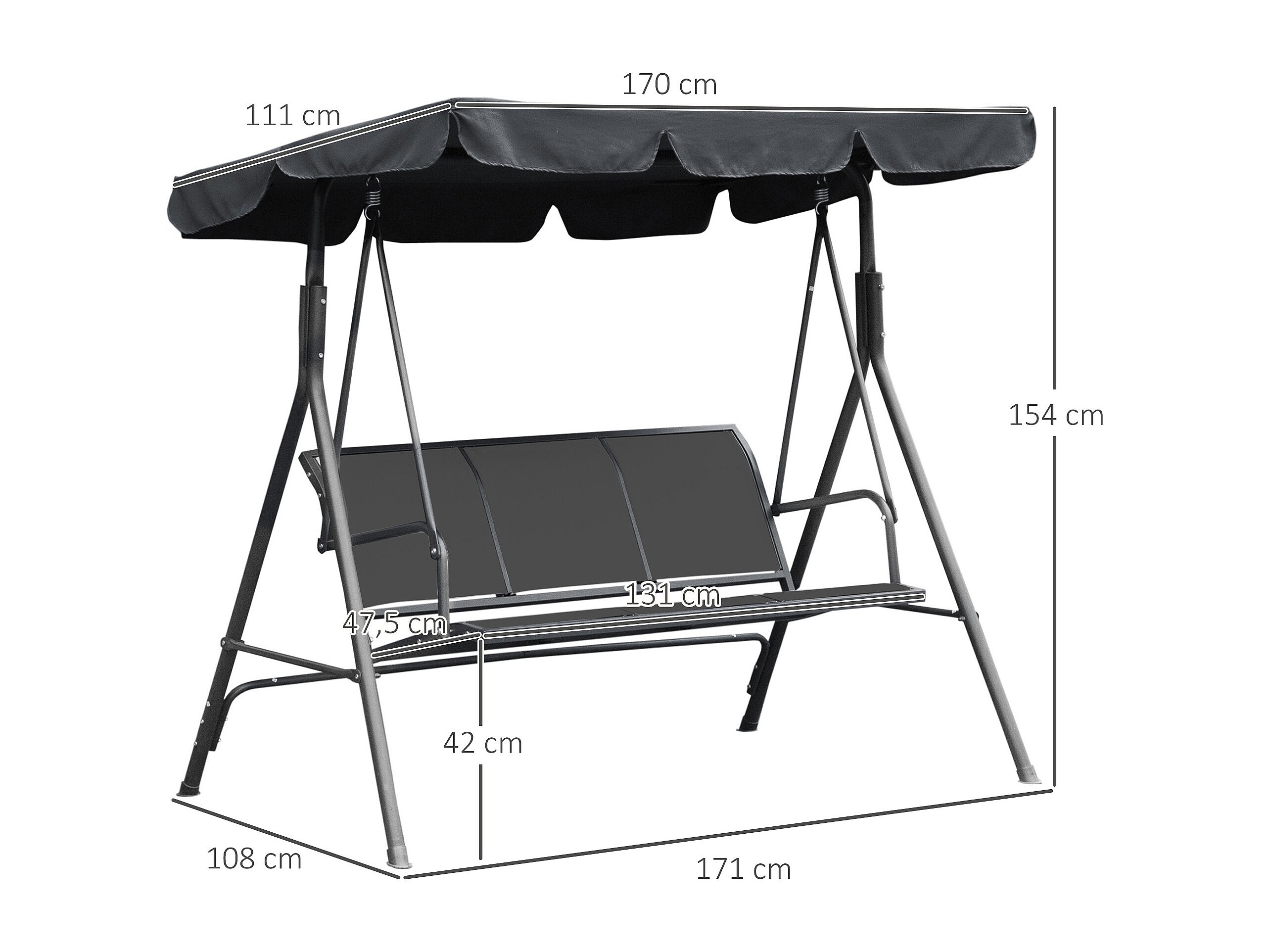 Balancelle de jardin 3 places grand confort toit imperméabilisé inclinaison réglable assise et dossier ergonomique acier textilène gris