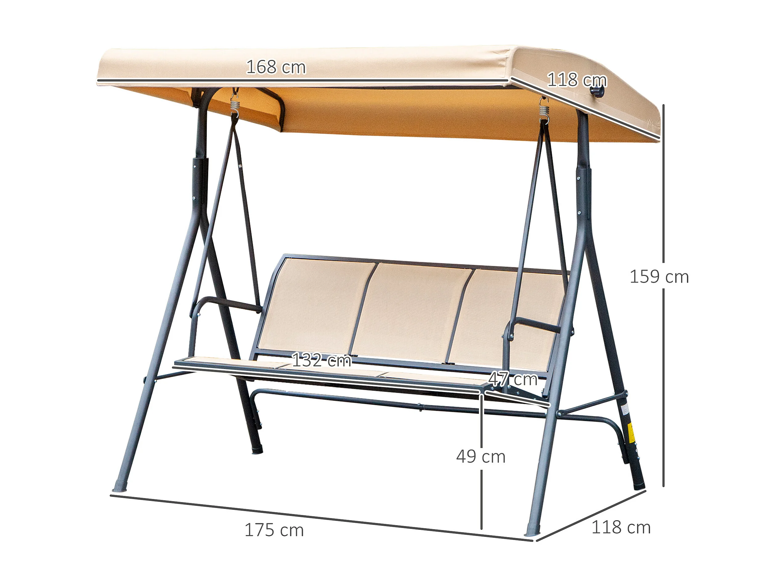 Balancelle de jardin 3 places grand confort toit inclinaison réglable assise et dossier ergonomique acier époxy textilène beige