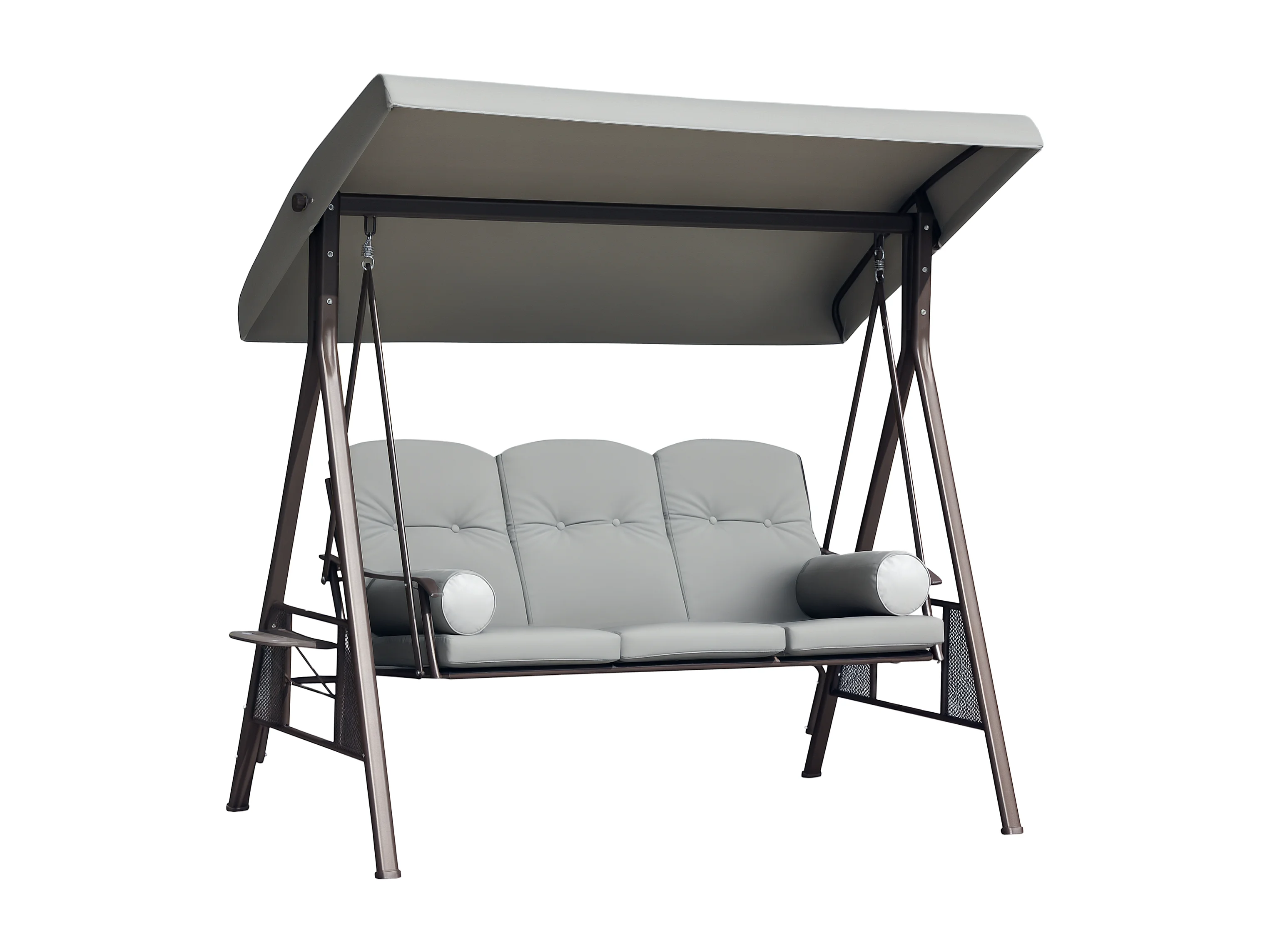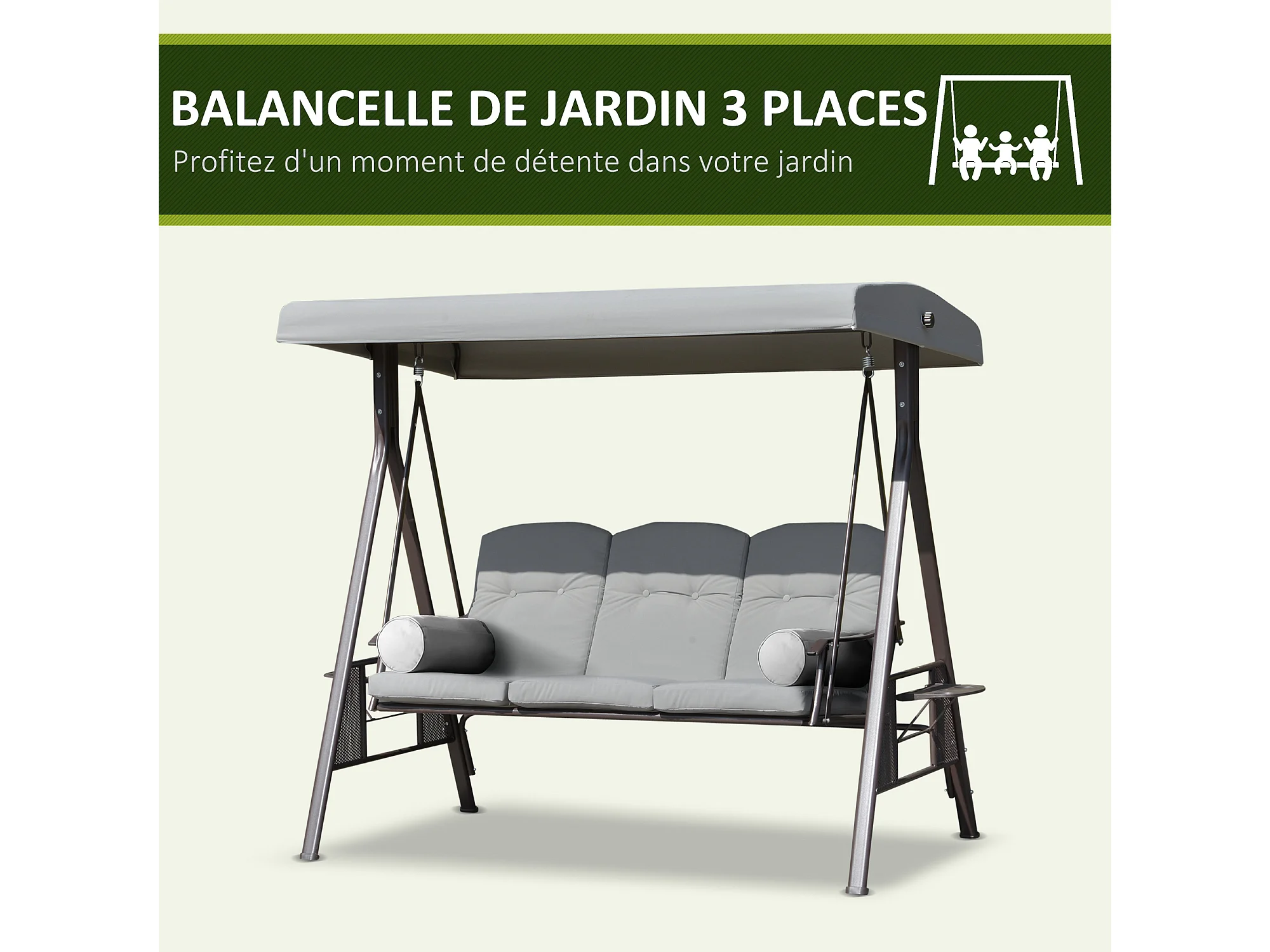 Balancelle de jardin 3 places grand confort toit inclinaison réglable coussins plateaux rétractables polyester filé gris