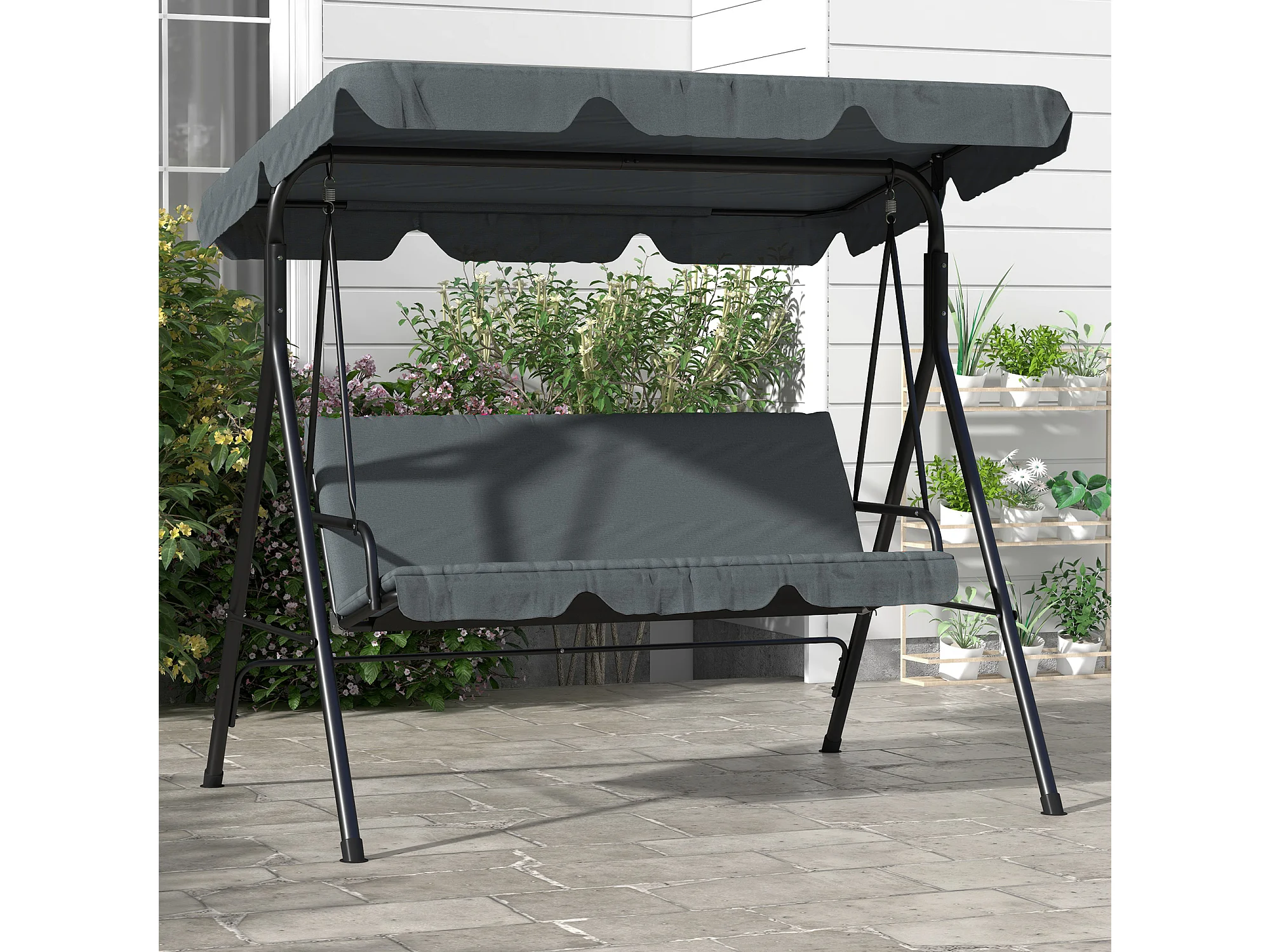 Balancelle de jardin 3 places toit réglable acier polyester gris