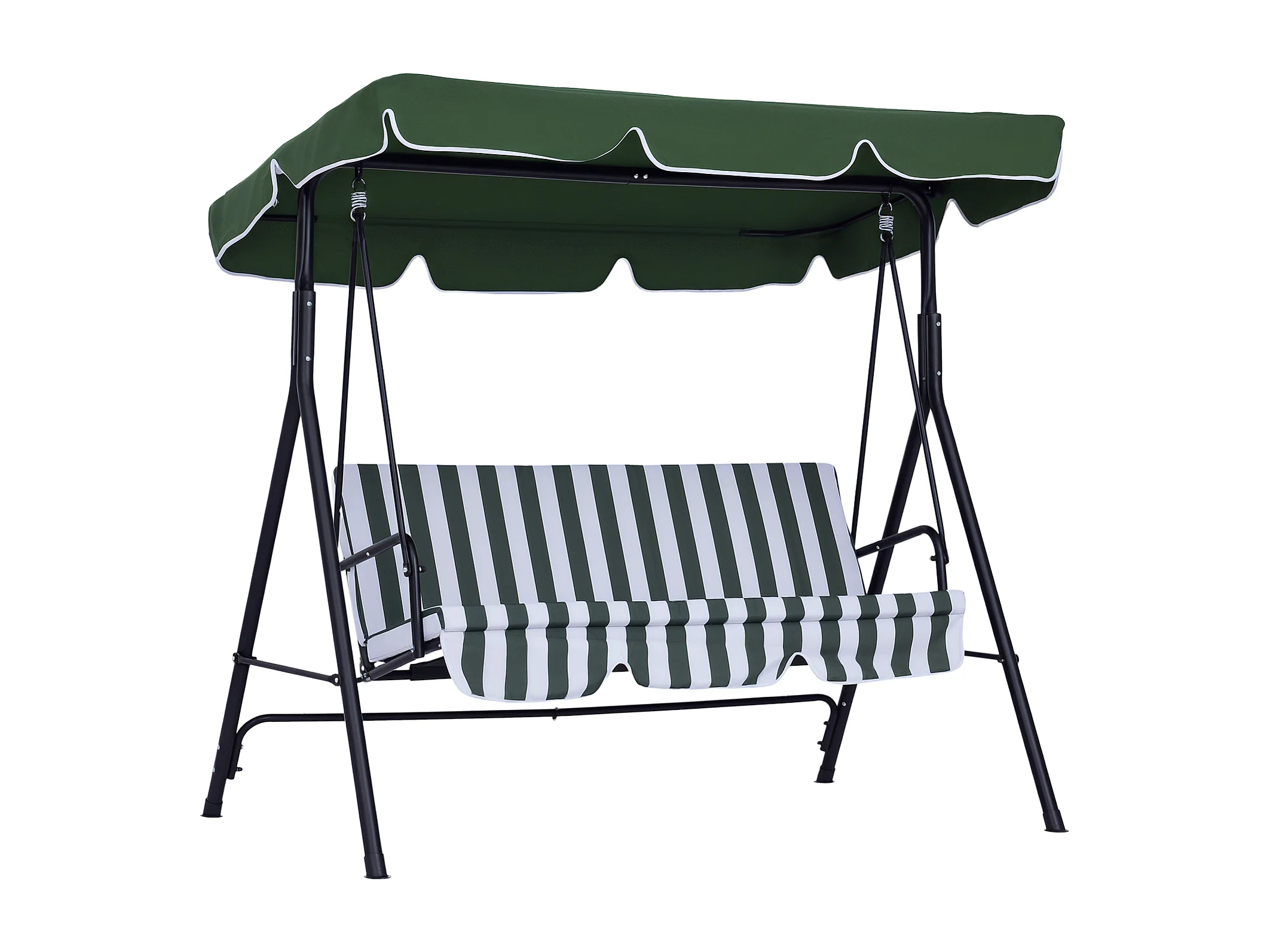 Balancelle de jardin 3 places toit réglable coussins assise dossier acier polyester vert blanc rayé