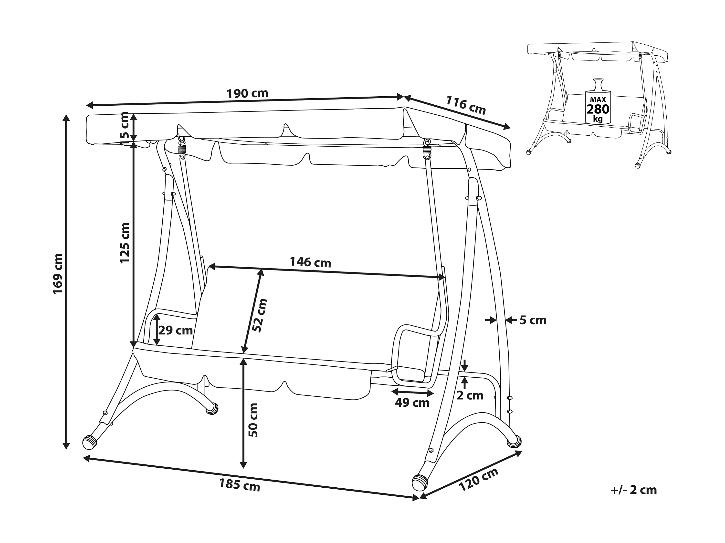 Balancelle de jardin TEMPLE Métal Gris foncé