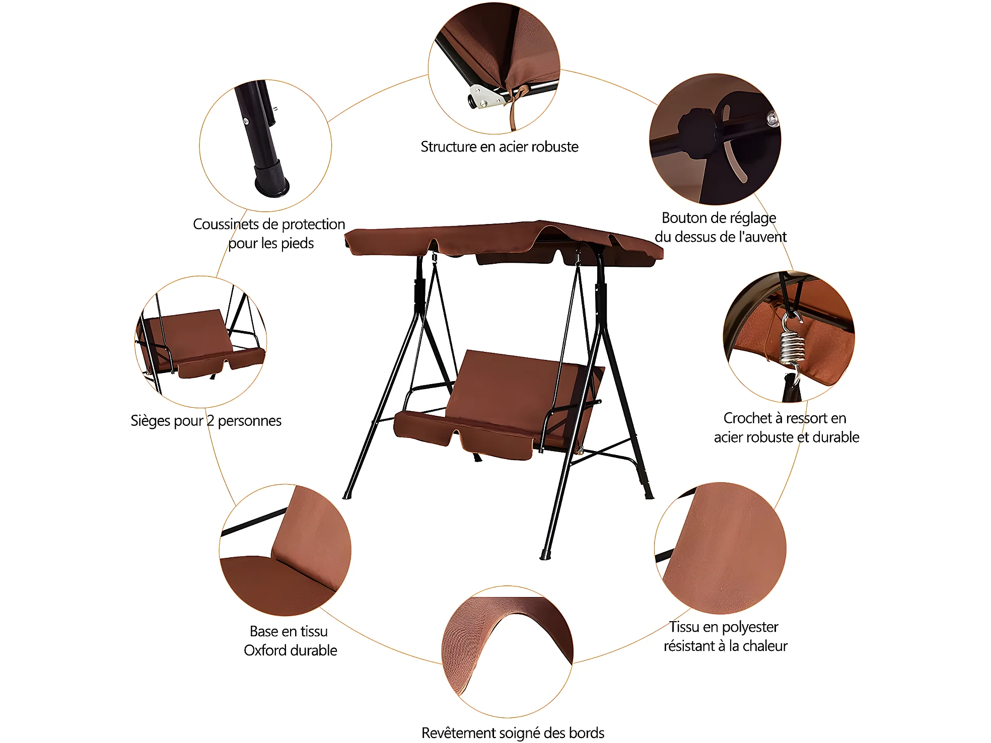 Balancelle de Jardin pour 2 Personnes sur Pied Résistant à L’UV avec Toit Imperméabilisant Idéal pour Jardin
