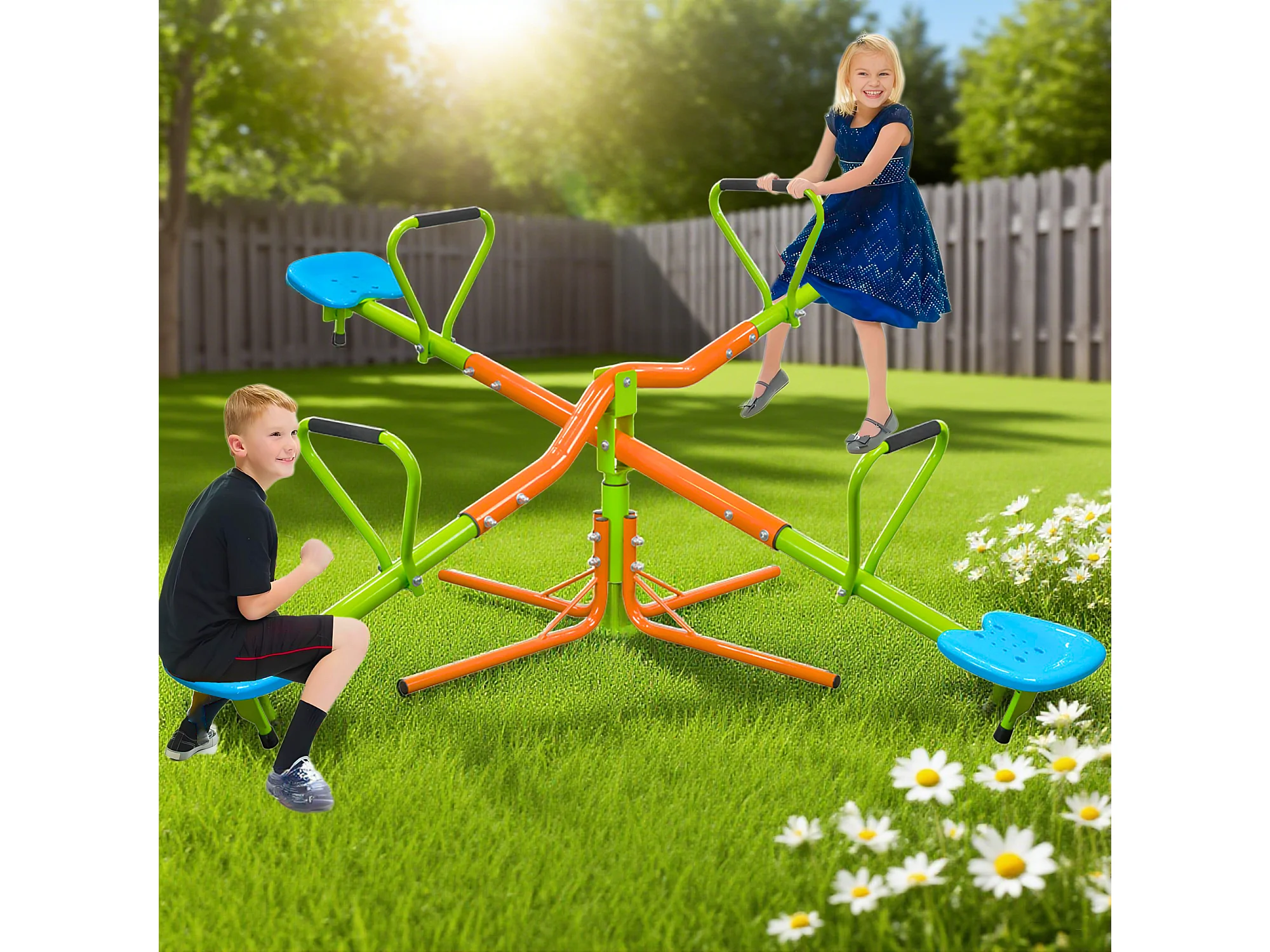 Balançoire 4 places en acier pivotante avec siège en plastique robuste - Vert