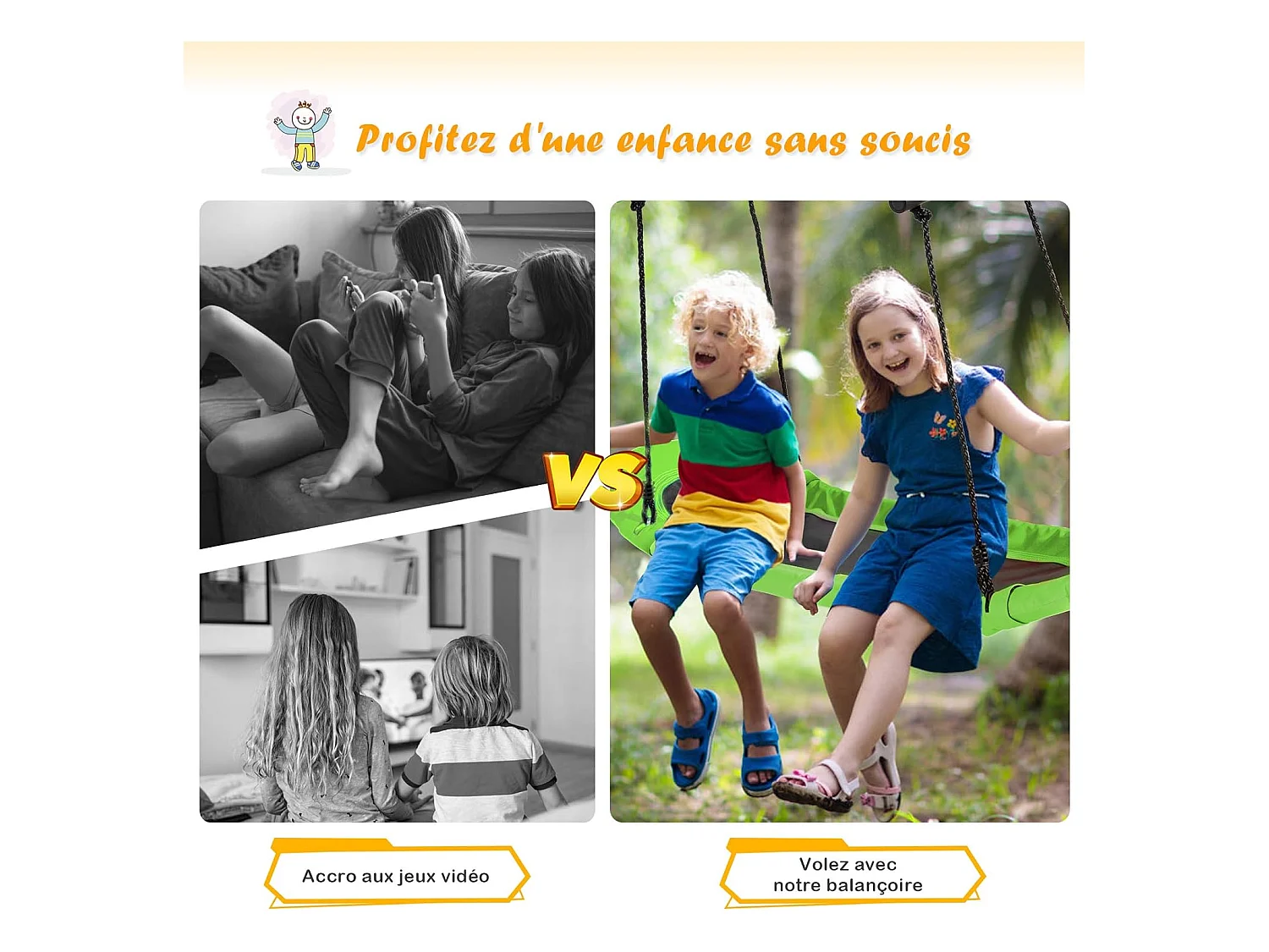 Siège de Balançoire pour Tout-Petits SucceBuy, Dossier Haut, Baquet Complet, Capacité de 68 kg, Balançoire pour Bébé