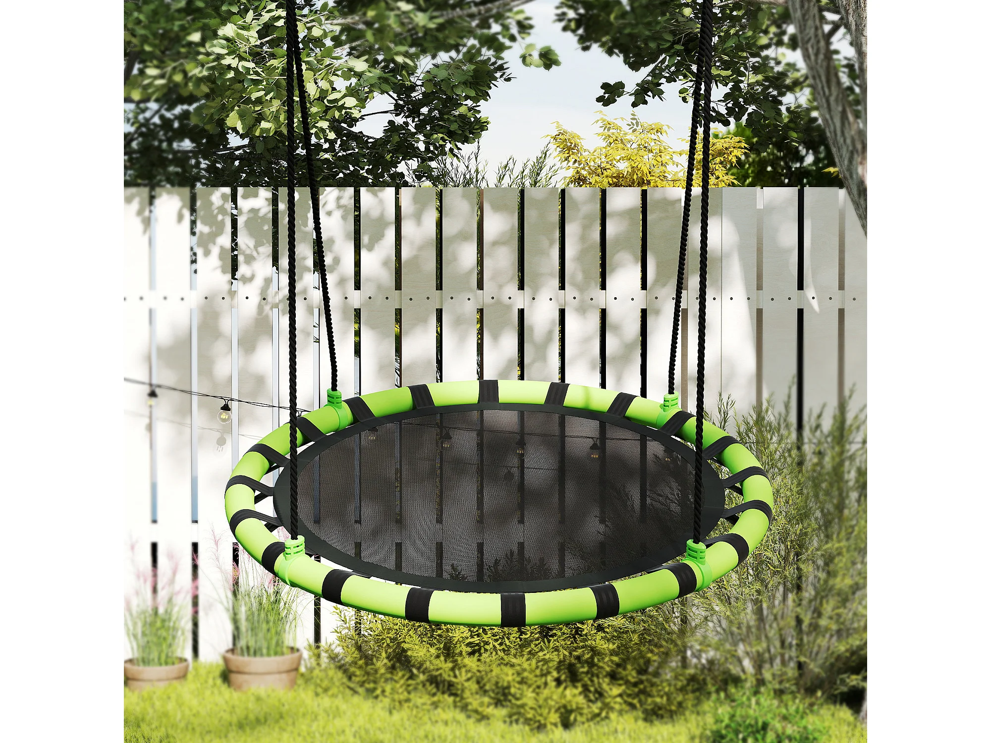 Balançoire nid d'oiseau ronde balançoire panier dia. 1 m 4 anneaux cordages inclus noir vert